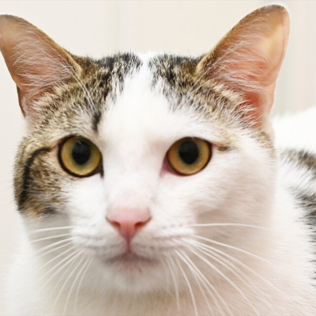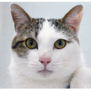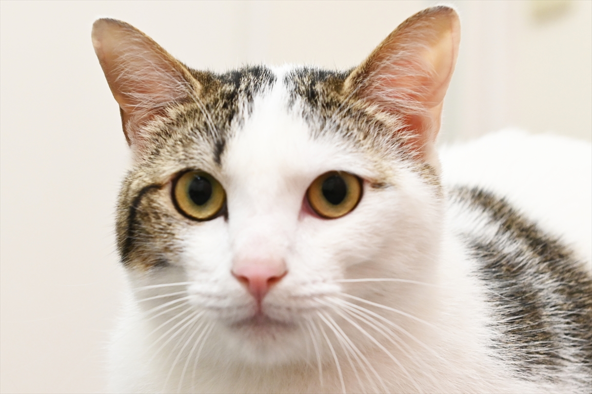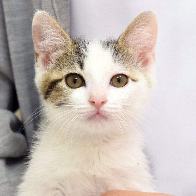 人間の保護下で生まれ、母猫の愛情を受け、兄弟と身を寄せ合って育ちましたので、屈託のないやんちゃボーイになりました。穏やかに誰にでも抱っこさせ、ゴロゴロいって甘える、人なつこい良い子です。