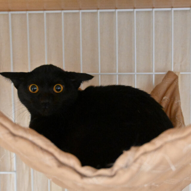 元気いっぱいで、施設内ではたくさん走り回ったりおもちゃで遊んだりして過ごしています。人懐っこく、ほかの猫とも仲良くできます。