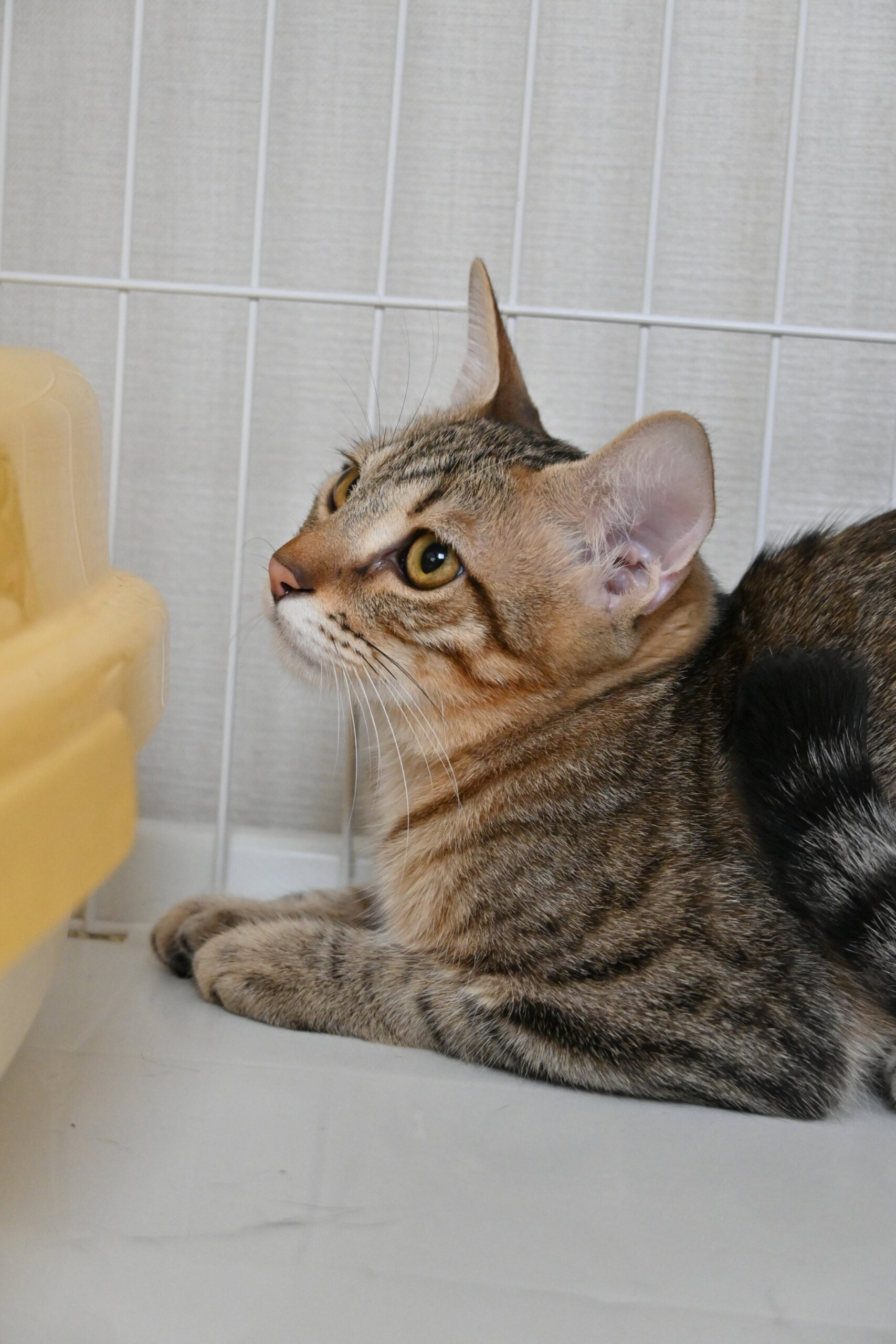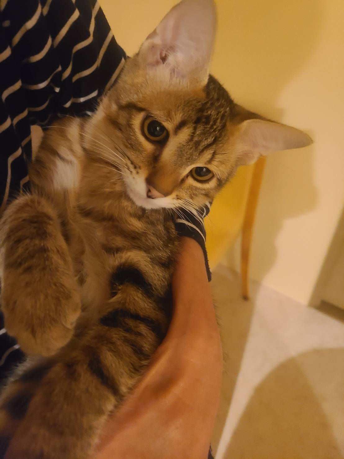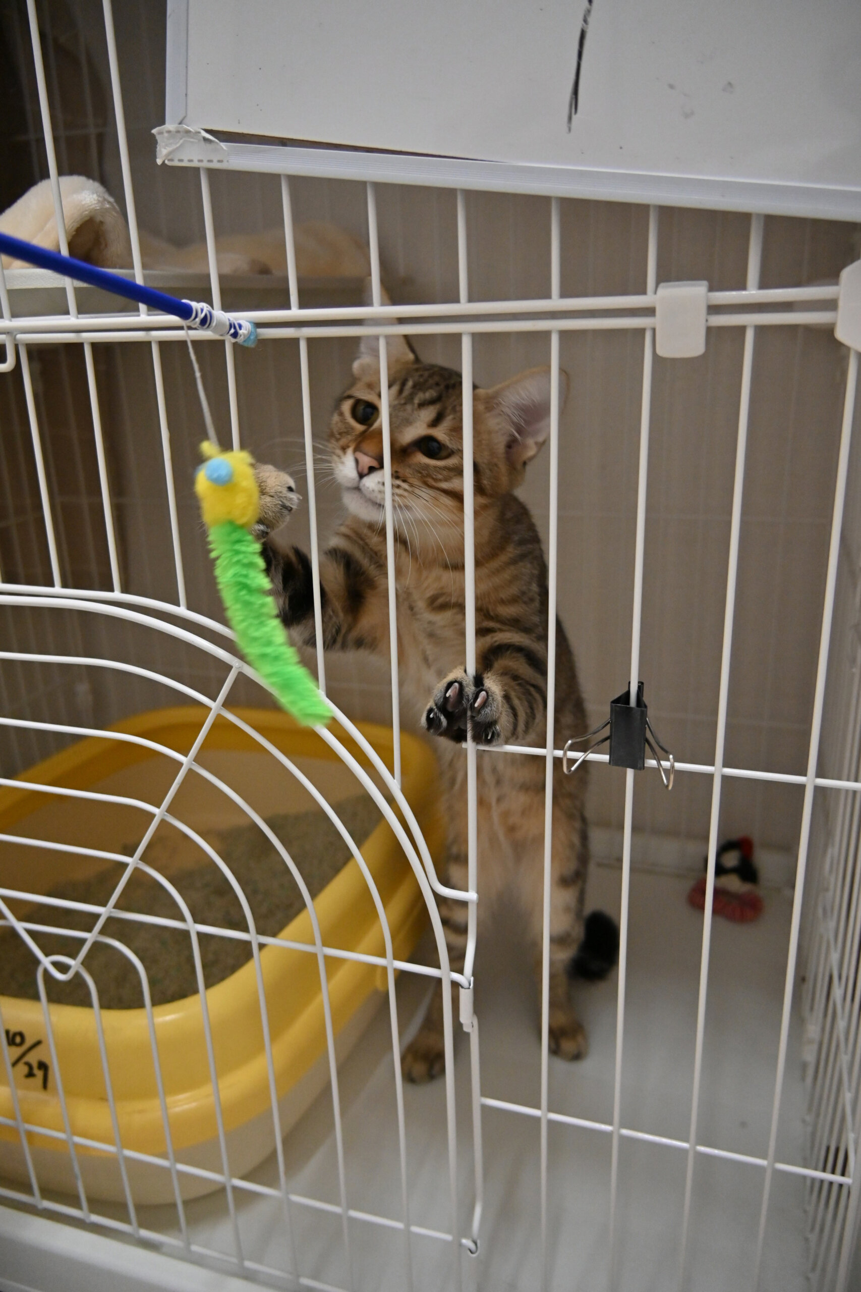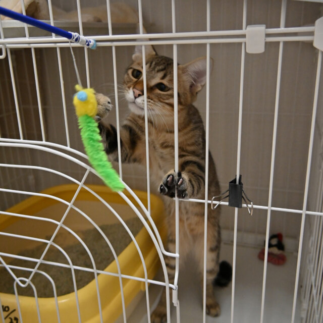 おもちゃで遊ぶのが大好きで目を見てニャンと鳴いて甘えてくれます。