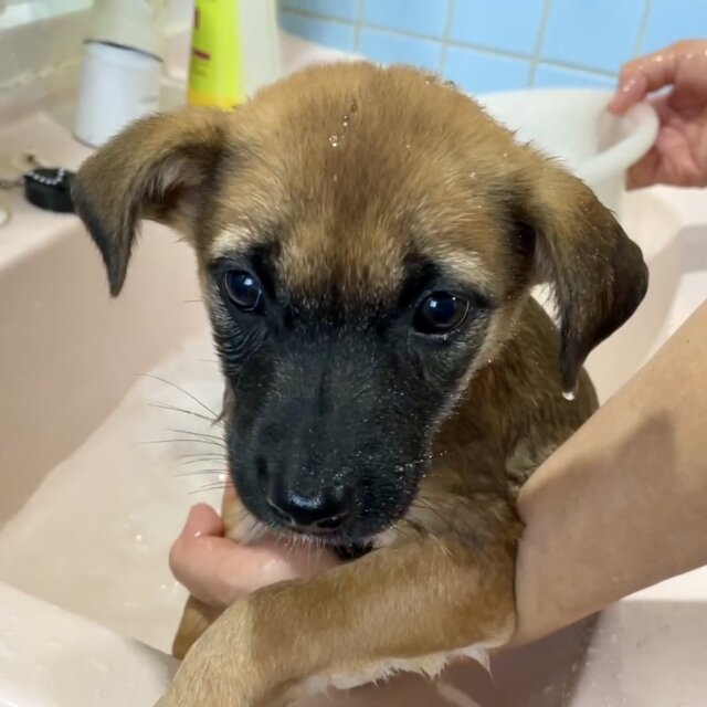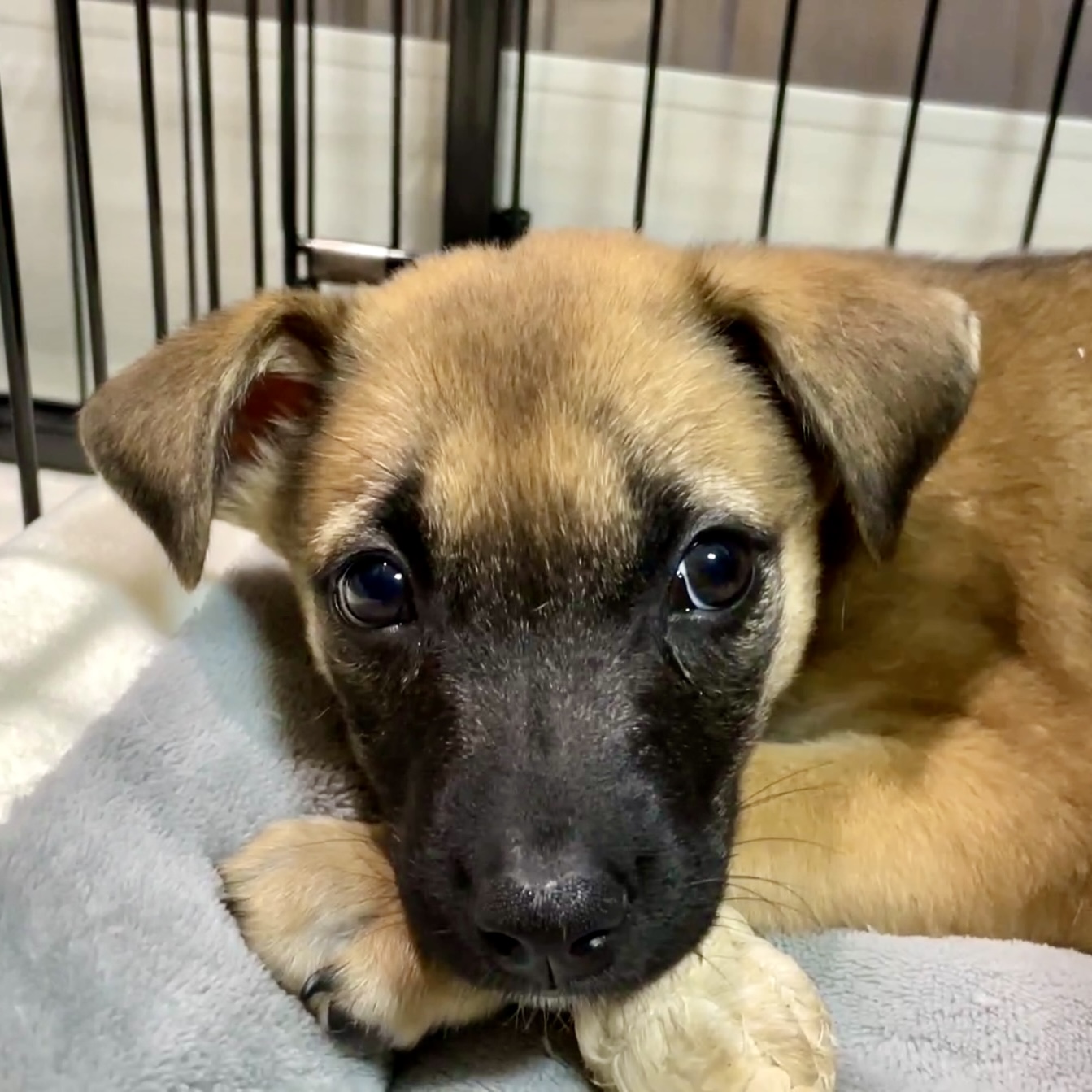 野良子犬特有の幼少期の栄養不足や貧血のわずかな兆候はありますが、ウェットフード(シュプレモ)などでケアをしていますので、引き渡しまでには完治するでしょう。