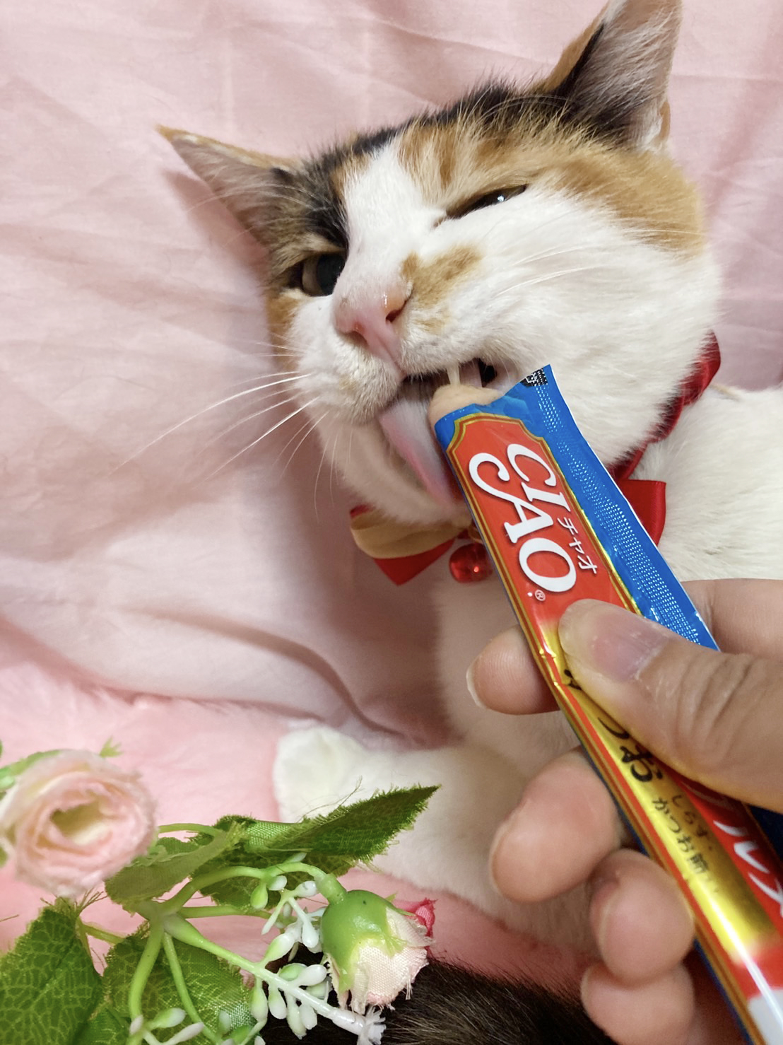 ちゅーるに目がなく、ちゅーるの気配があれば真っ先に飛んできます。