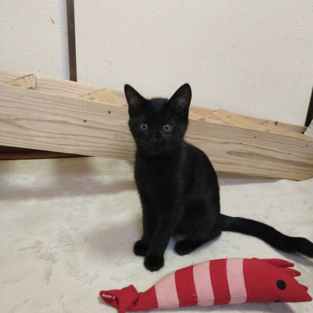 ちょっとしっぽが曲がっている可愛い黒猫です。