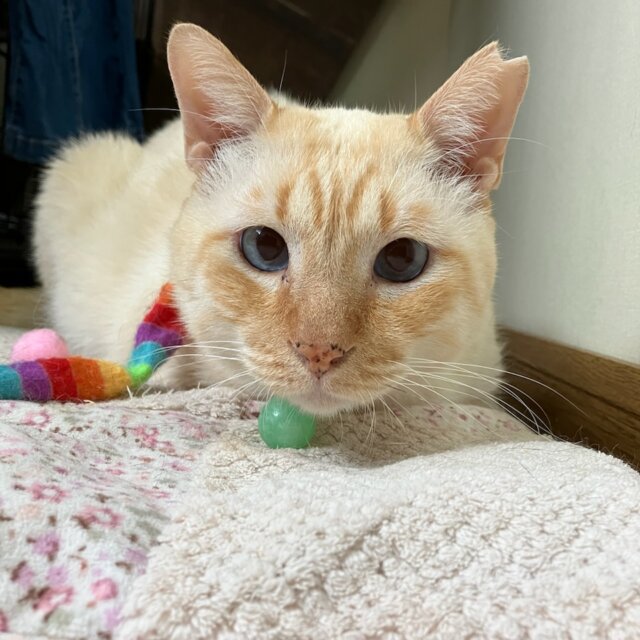 遊ぶようにもなり、猫じゃらしで玉取りしてくれて、その時のお目目がまん丸になる表情と玉取りするお手手がやっぱり可愛いです。