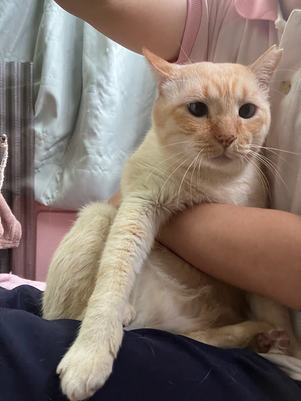 最初は見た目もだいぶ汚れていたり、目つきも鋭かったですが、今では綺麗なミルクセーキみたいな癒される毛色で、とっても可愛いお目目くりくりなつぶらな瞳で表情もだいぶ柔らかくなりました。ニャーニャー甘えてもきてくれます。こんなに変わるもんなんだなとビックリしました。外ではきっと気を張らざるえなかったから仕方がなかったんでしょうね。