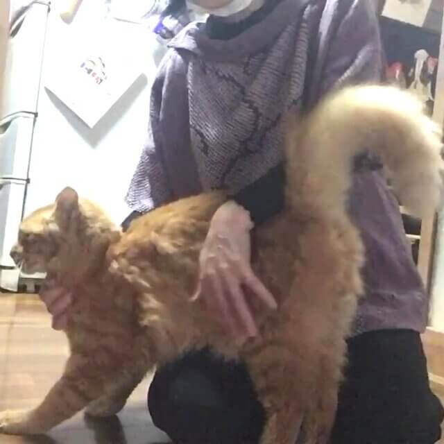 茶トラの中長毛種でモコモコしています。