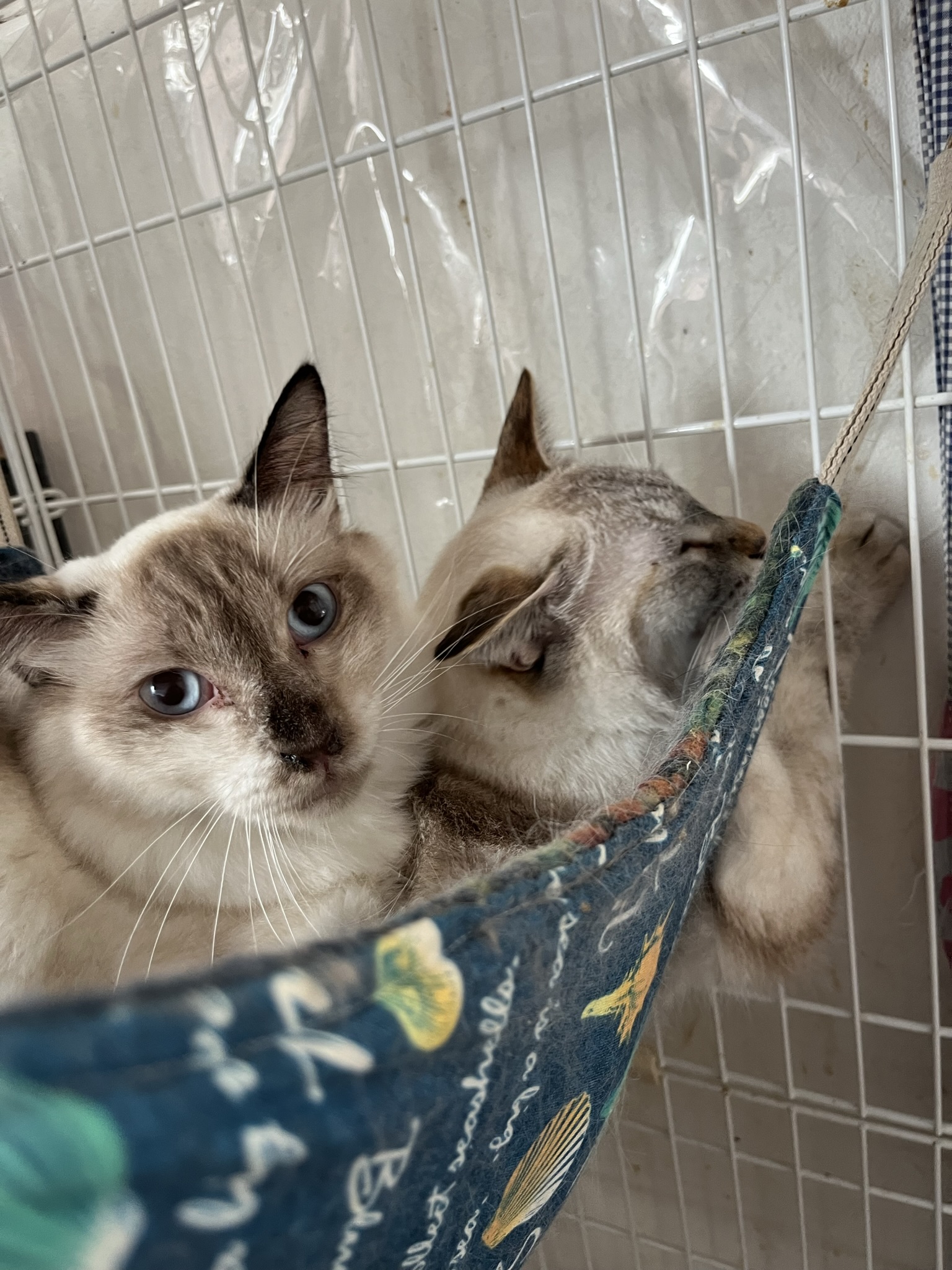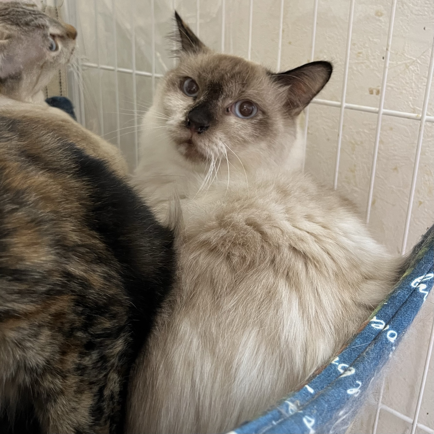 | 種類(?種/猫種) | 雑種/白いふわふわ/シャムっぽい子 |
