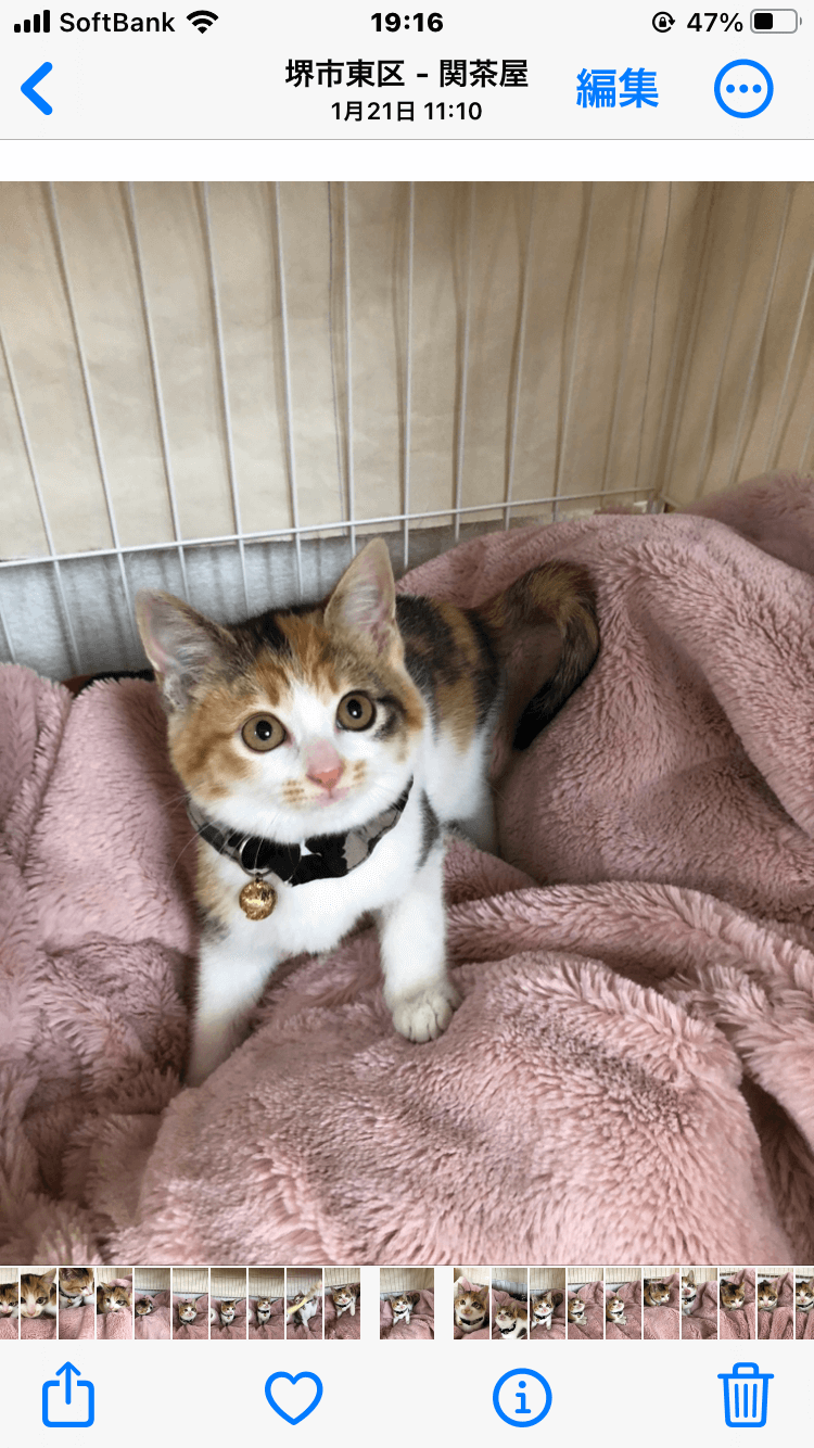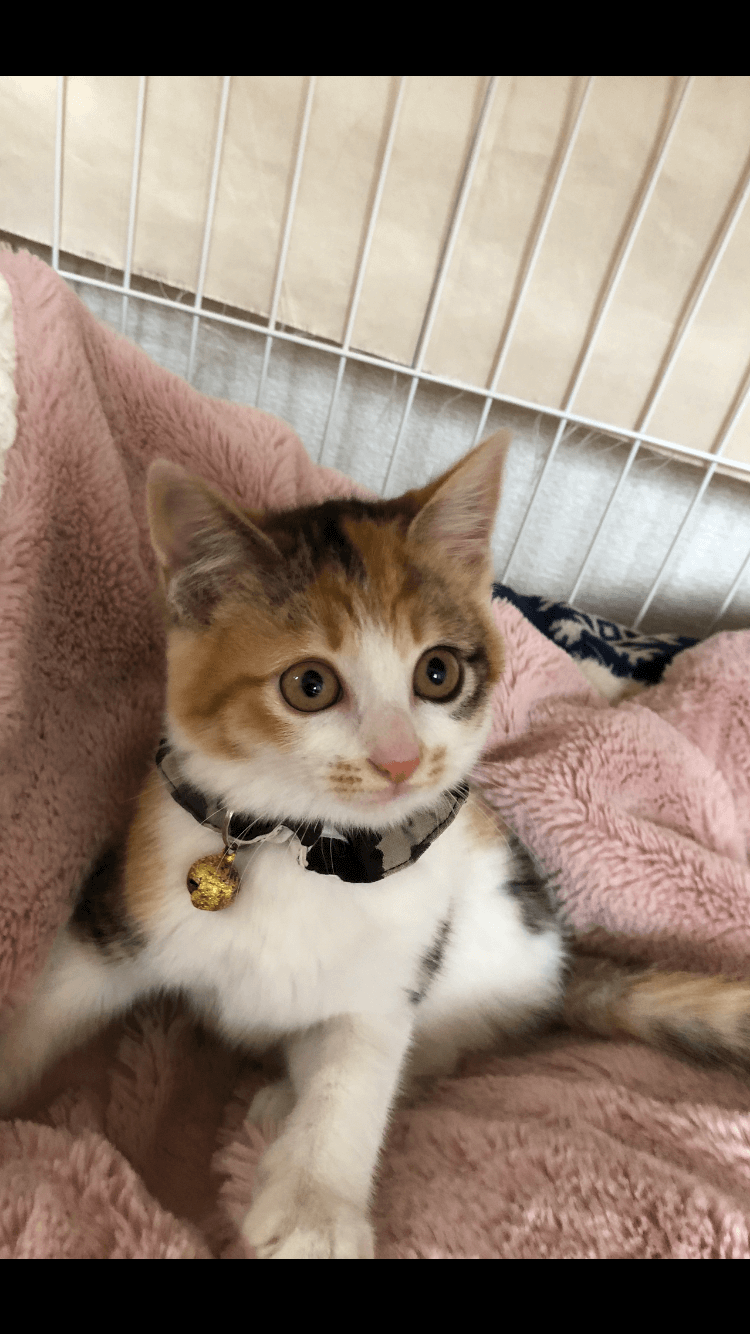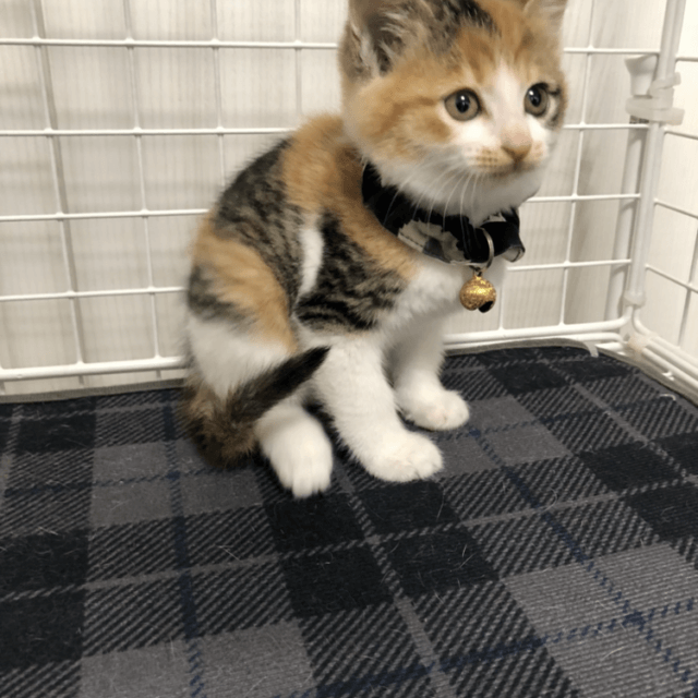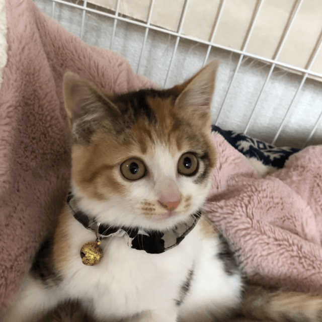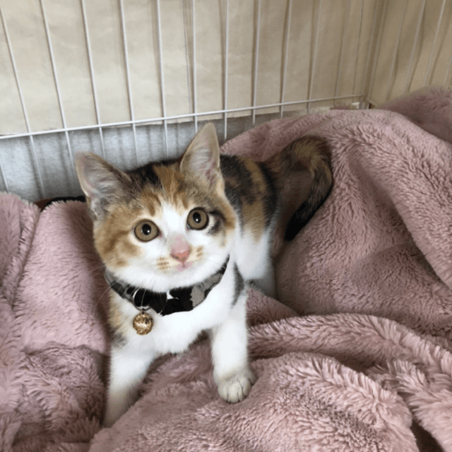 生後3ヶ月前後の丸顔の可愛い三毛猫の女の子