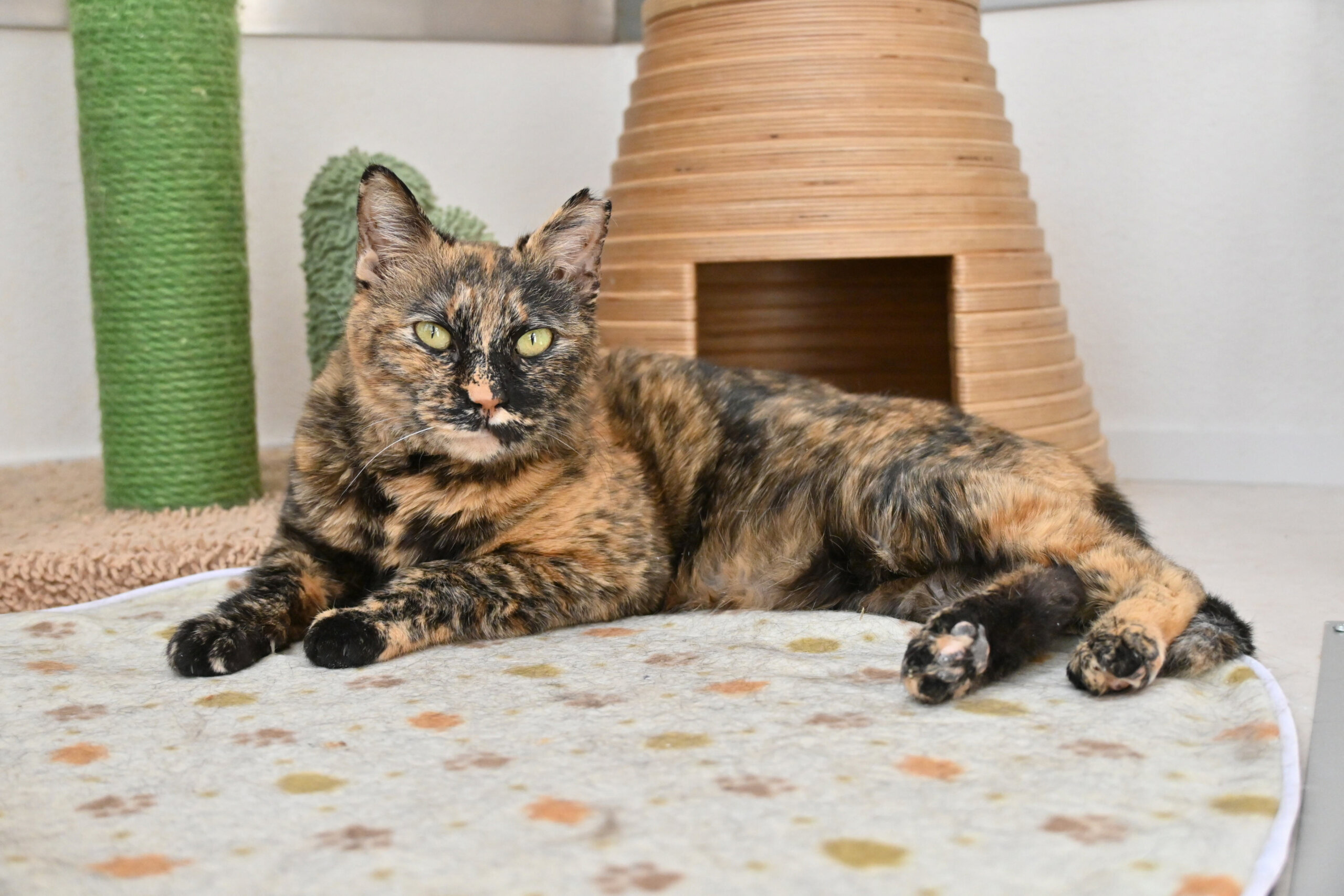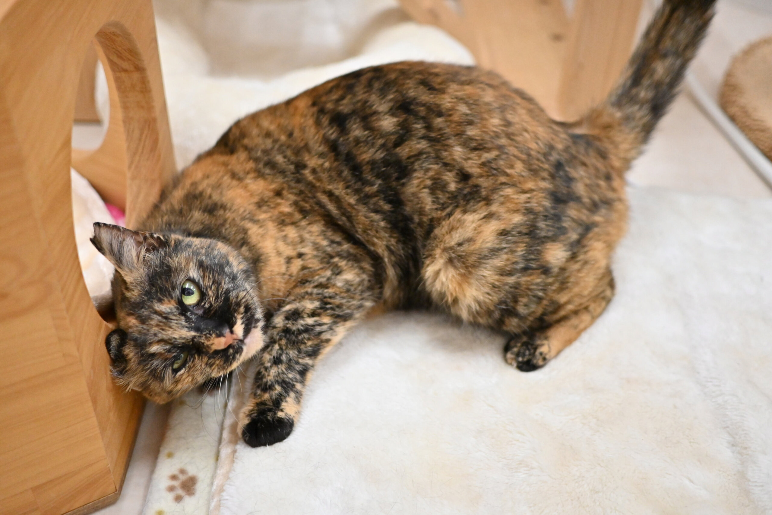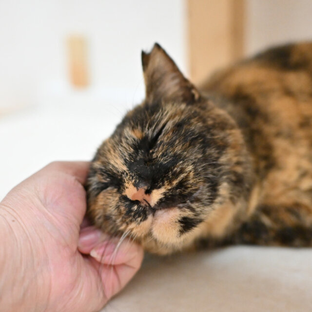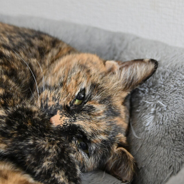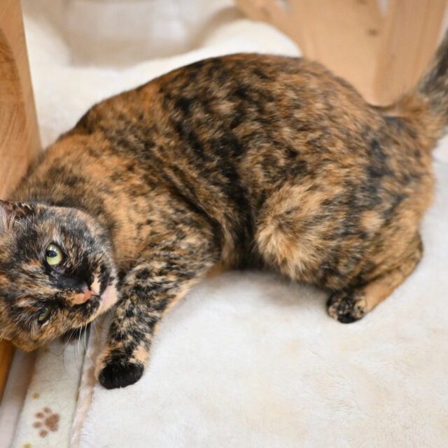 まるで水彩画の世界から抜け出してきたかのような顔は一度会ったらクセになります。 オジさん顔系女子です。 控え目ですが、撫でてくれるとわかるととことん甘えてきます!スタッフもズボン毛だらけにして長時間の甘え攻撃にかなわず残業しちゃいます!