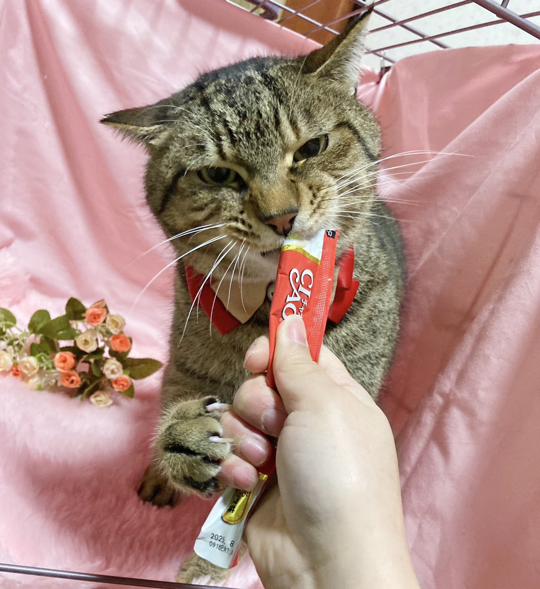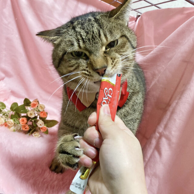 また、大好物のちゅーるの匂いを嗅ぎつけると、目をキラキラさせて待っています。