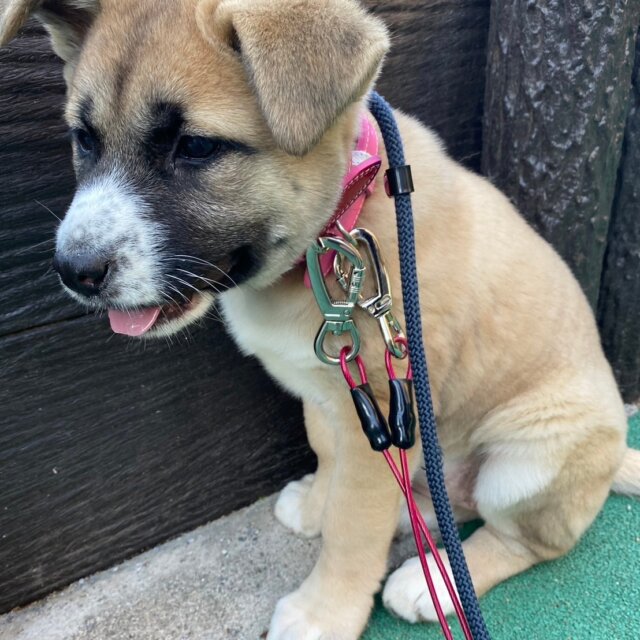 まだ怖がりな部分はありますが、家庭犬に向けて毎日色々な事に頑張ってくれています。お散歩も上手になりました。外でも家でもトイレがしっかり出来ています。