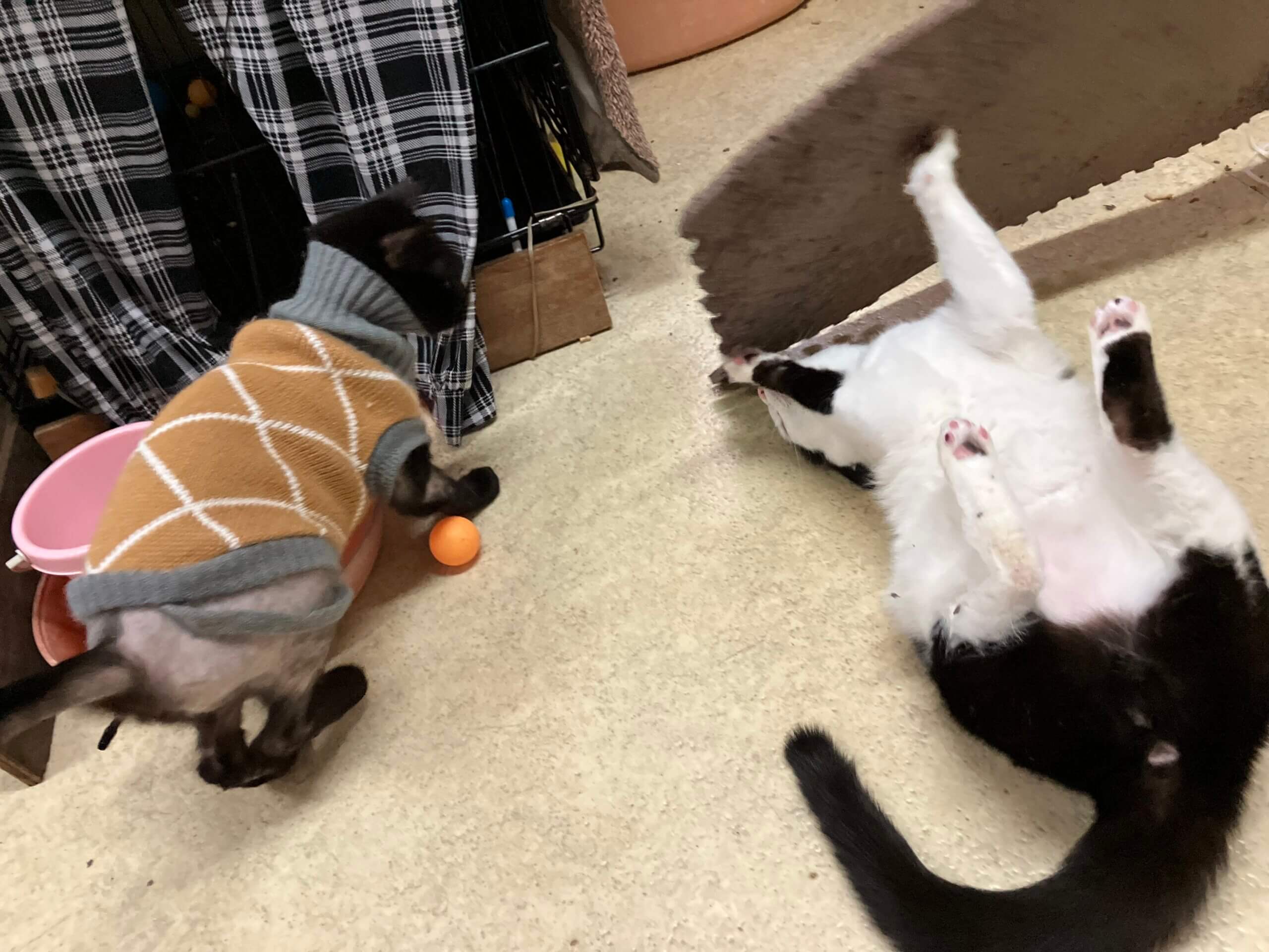 ノミダニ虫下し済、さくら耳カット有り、猫エイズキャリア+、猫白血病-、ご飯もよく食べて、元気に遊んでます。
