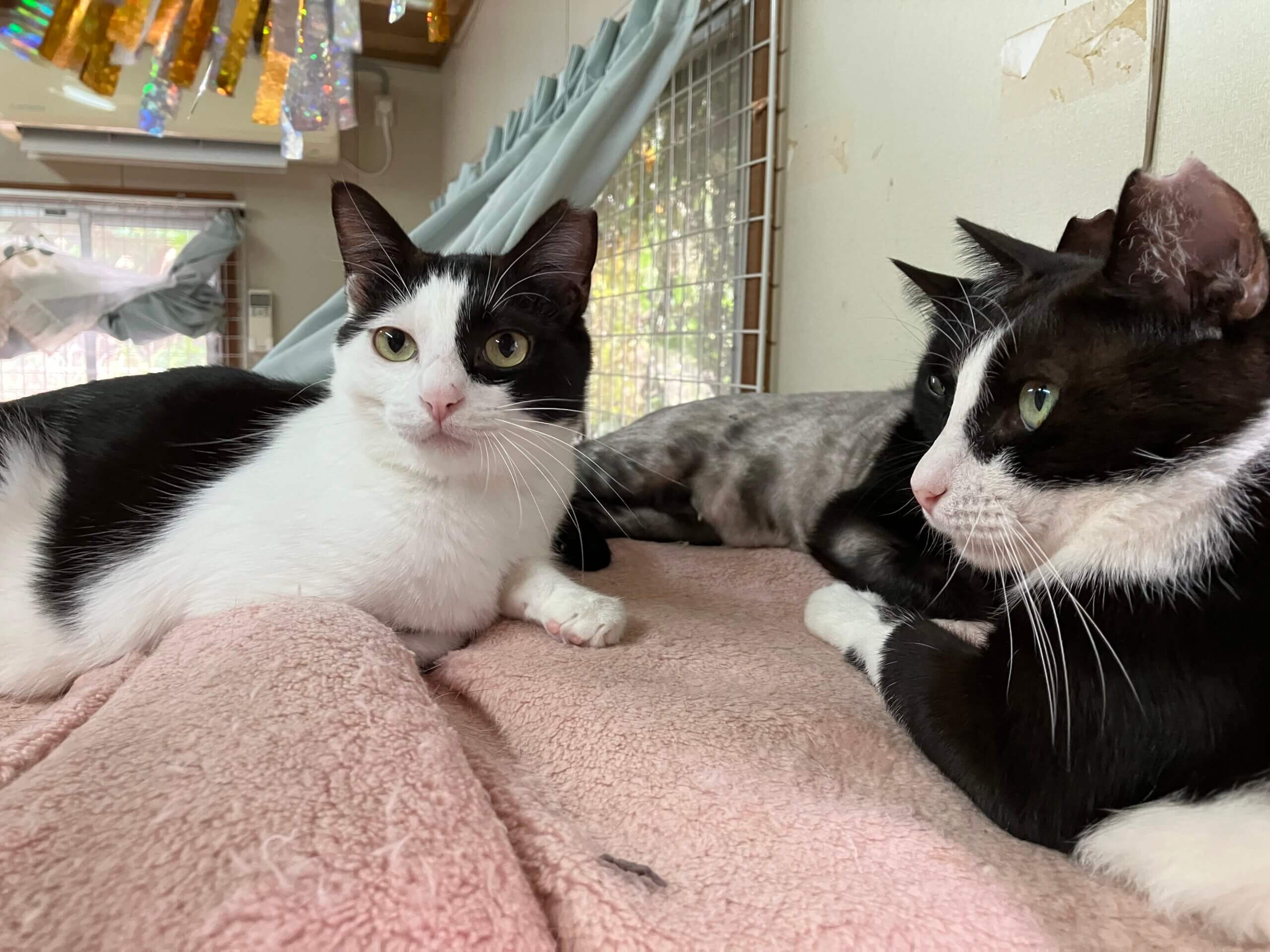 けいくんは狭い所が好きなようで、猫一匹くらいしか入らない所にいることが多いです。自分の陣地みたいな安心できるのかもしれません。毛布の中に潜ったり、何かしらの中に潜りたがります。すると、他の子がモゾモゾしてる上から乗ってきたりして、一緒に戯れあったりしています。