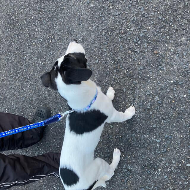 ボーダーコリーとシェパードのミックスなのでそこそこ大きくなります