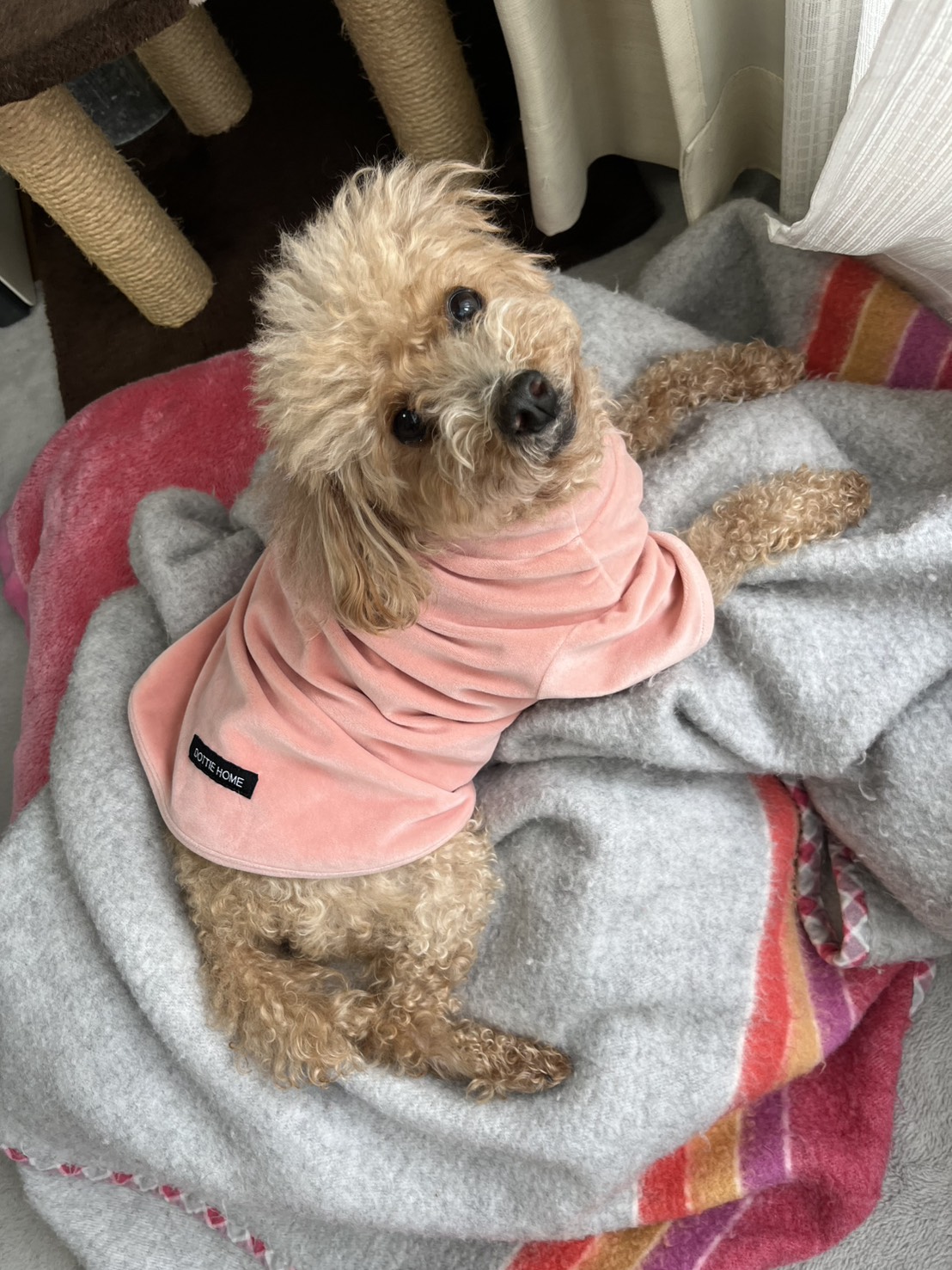 元気で活発です。とてもフレンドリーで猫やちょっと大きな犬とも遊んでいます。白い色の犬や猫は苦手なようです。