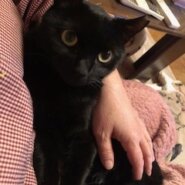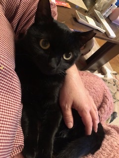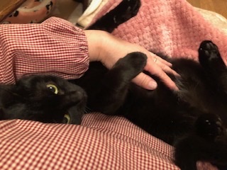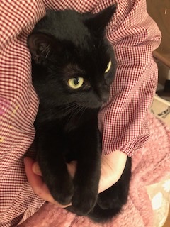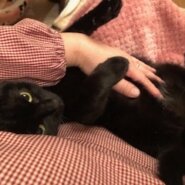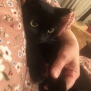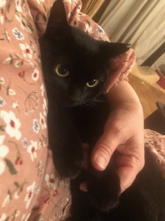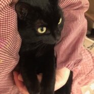 とても可愛い小柄な黒猫の女の子でお腹の一部が少しだけ白く、毛並みがシルクのように綺麗です。保護した時はびびりでパンチしてシャーしていましたが、慣れてきたらとても甘えん坊に変身しました。