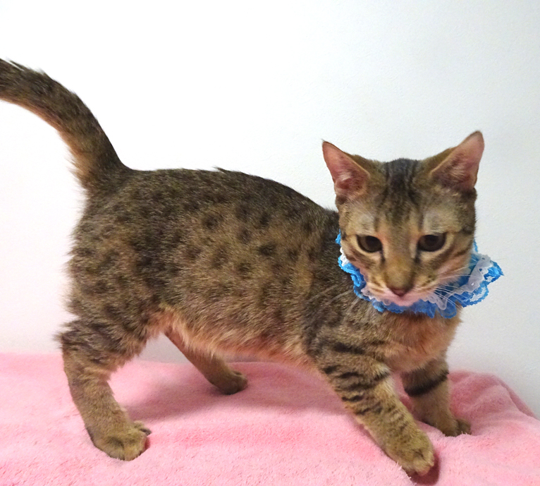 【毛色・柄】 マンチカン、斑点(はんてん)模様、長いシッポ
