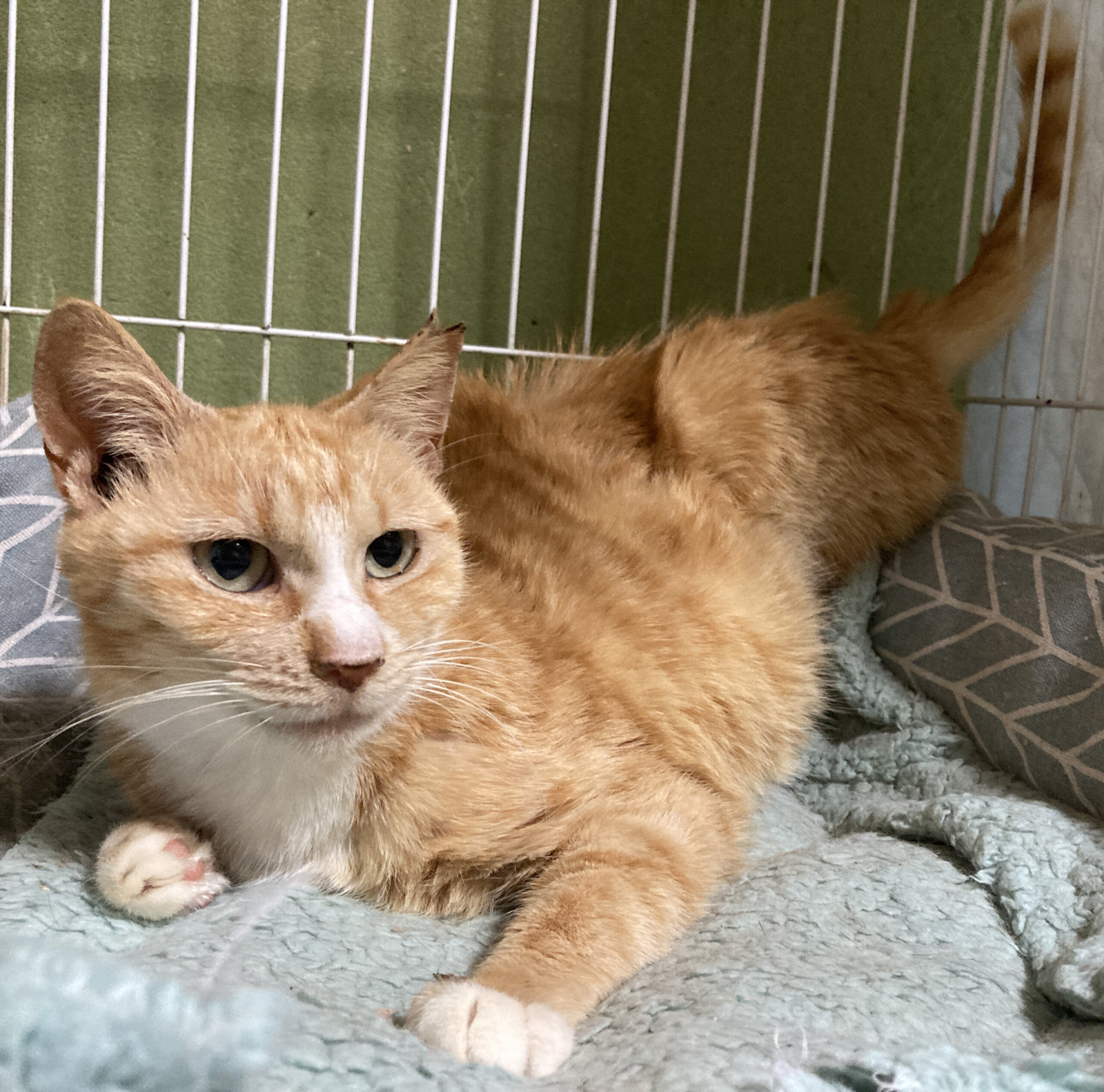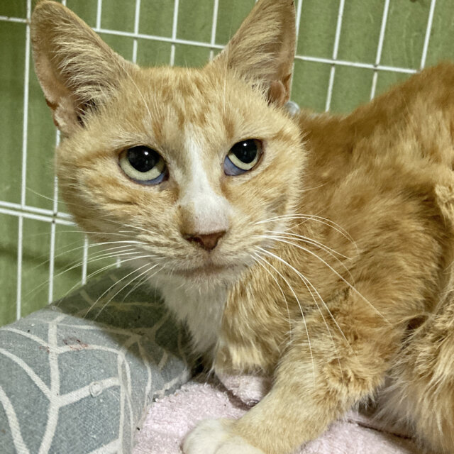 無責任な餌やりで猫が増えてしまった現場で保護しました。優しい性格のため、縄張り争いに負けてご飯にありつけなかったようです。