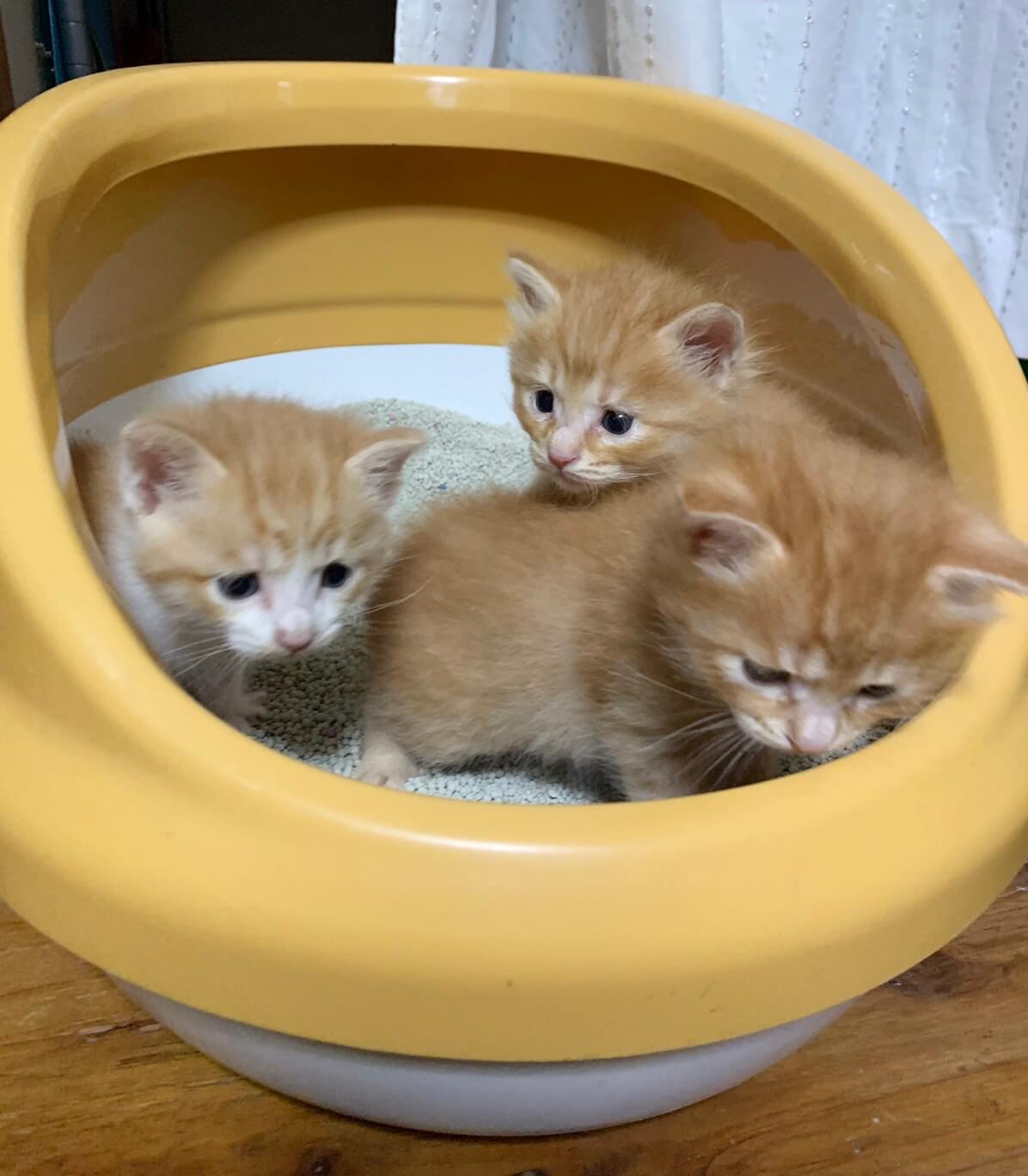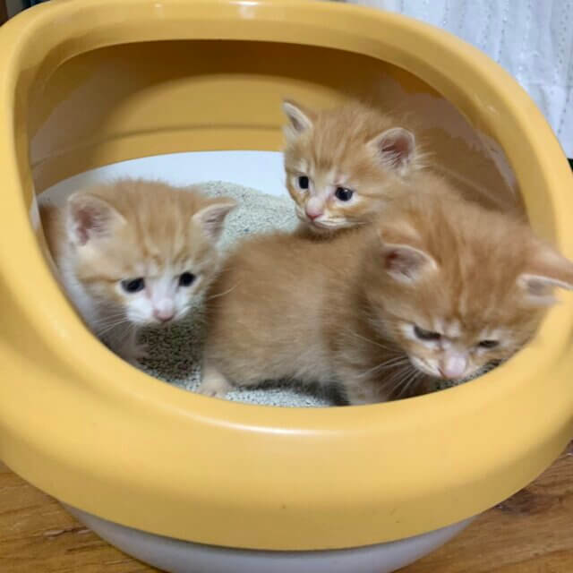 母猫は三毛ですが3匹とも白色も混じっている子も含め茶トラの赤ちゃんになります。