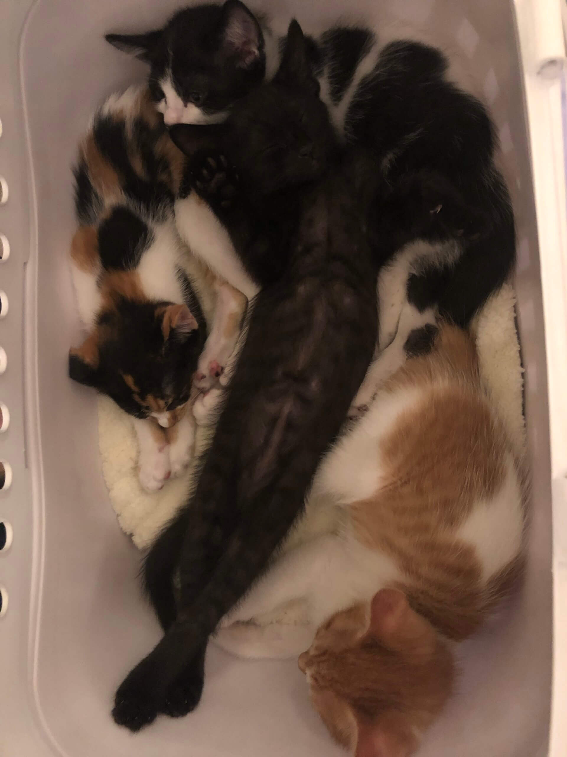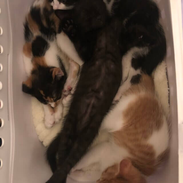 母猫は人馴れがまだ完全ではなく、子猫を守ろうと更に警戒か強くなり、子猫達を隠してしまい、この頃やっと母猫と少しだけ意思疎通が取れるようになり、子猫を触っても唸らなくなりました。母猫も少しだけ触れるようになりました。ですが毎回、隔離部屋に入った最初はシャー状態なので、あまりストレスにならないよう、ご飯の時のみ、子猫達をチェックしています。 -