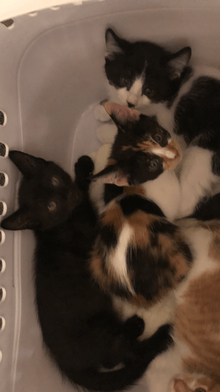 母猫は人馴れがまだ完全ではなく、子猫を守ろうと更に警戒か強くなり、子猫達を隠してしまい、この頃やっと母猫と少しだけ意思疎通が取れるようになり、子猫を触っても唸らなくなりました。母猫も少しだけ触れるようになりました。ですが毎回、隔離部屋に入った最初はシャー状態なので、あまりストレスにならないよう、ご飯の時のみ、子猫達をチェックしています。 -