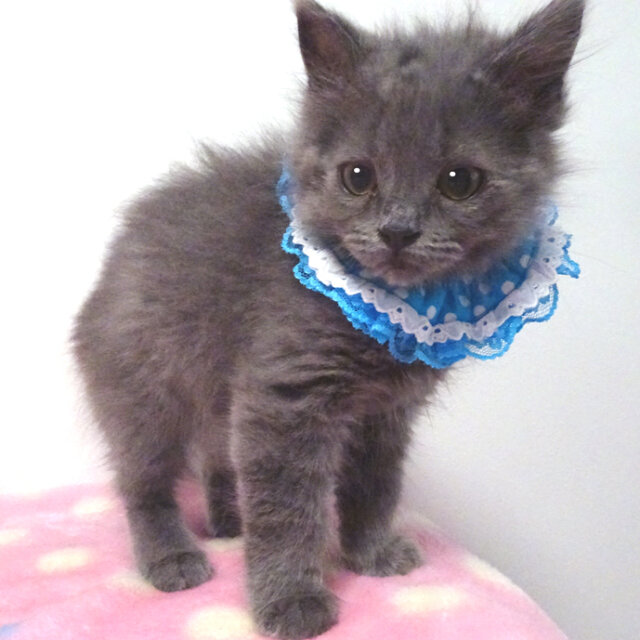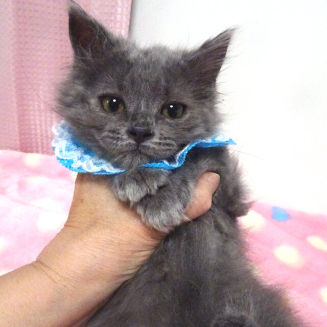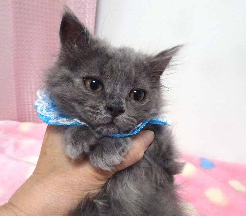 【毛色・柄】 きれいな長毛ブルーグレー、長いシッポ