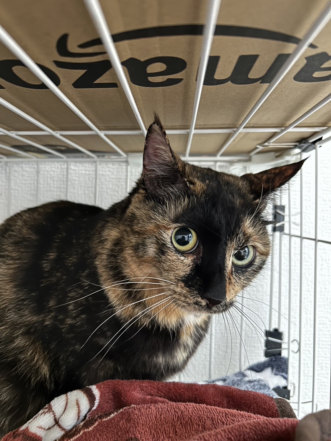 保護主さんが玄関先でエサやりをしていましたが、寒さ対策や避妊目的で保護しました。