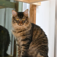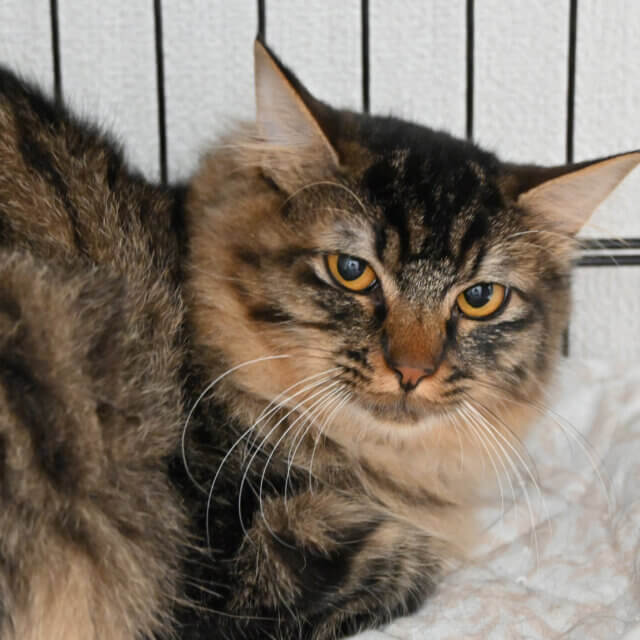 アビーと同じ場所で保護。保護主さんの庭によく来ていた子ねこで、ご近所さんにご飯をもらっていたようです。