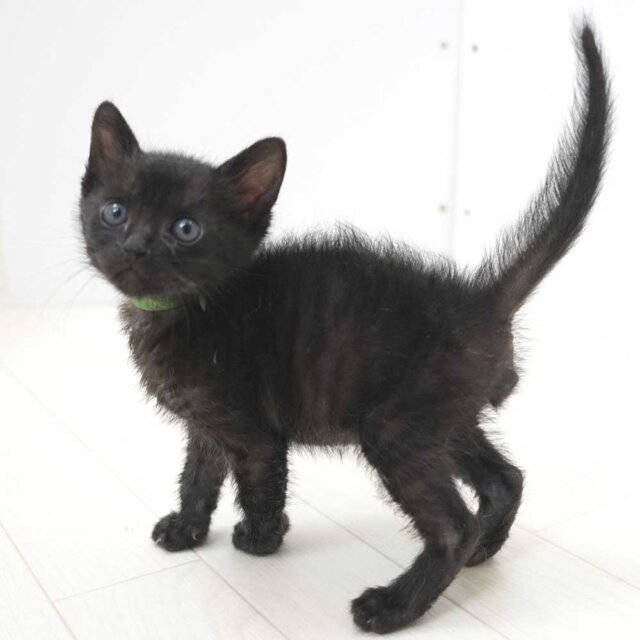 2024年5月3日入所の黒2匹兄弟の①黒の男の子(緑首輪)