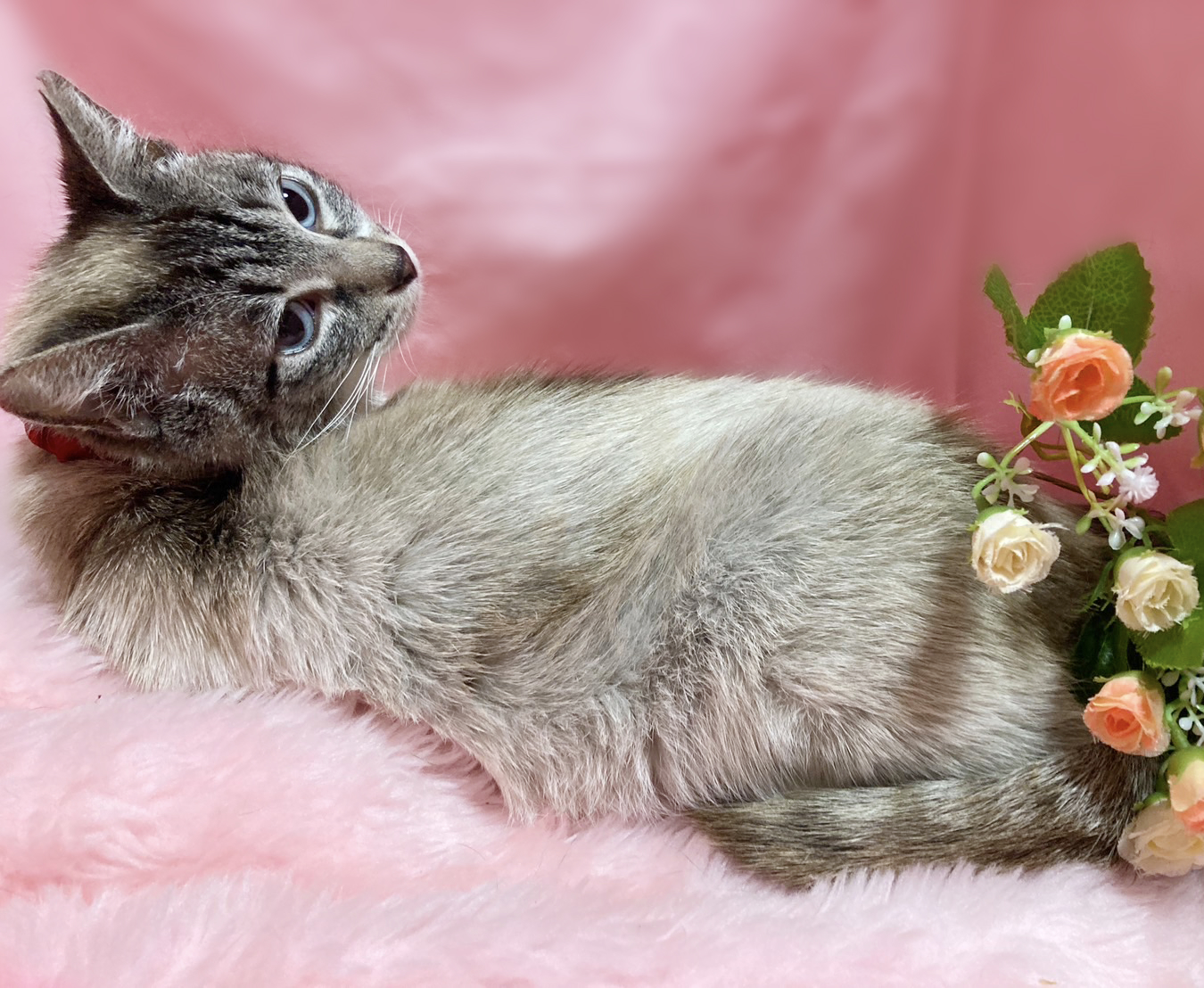 【毛色・柄】 ポインテッド ブルーアイ 尻尾まっすぐとても臆病のため、最初はシャーシャー威嚇したり、手が出てしまうことがあります。