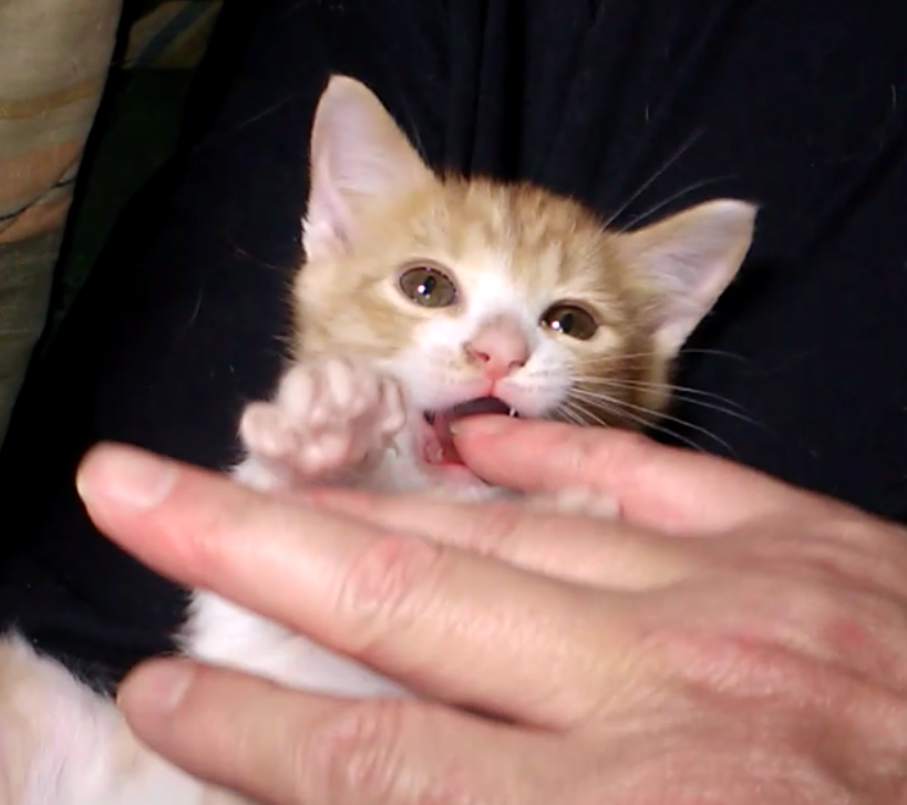 今年の春、子猫を12匹保護しましたが、病弱なこの子とキジBくんは、私の部屋で寝泊まりしていました。そのため、とても良くなついています。 キジBくん:https://pochi-tama.or.jp/49872/