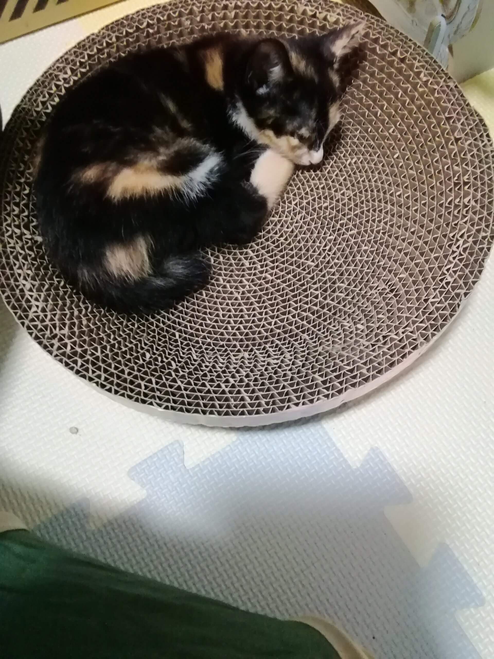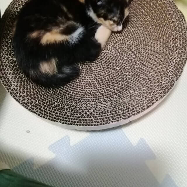 黒が多めの三毛猫です。