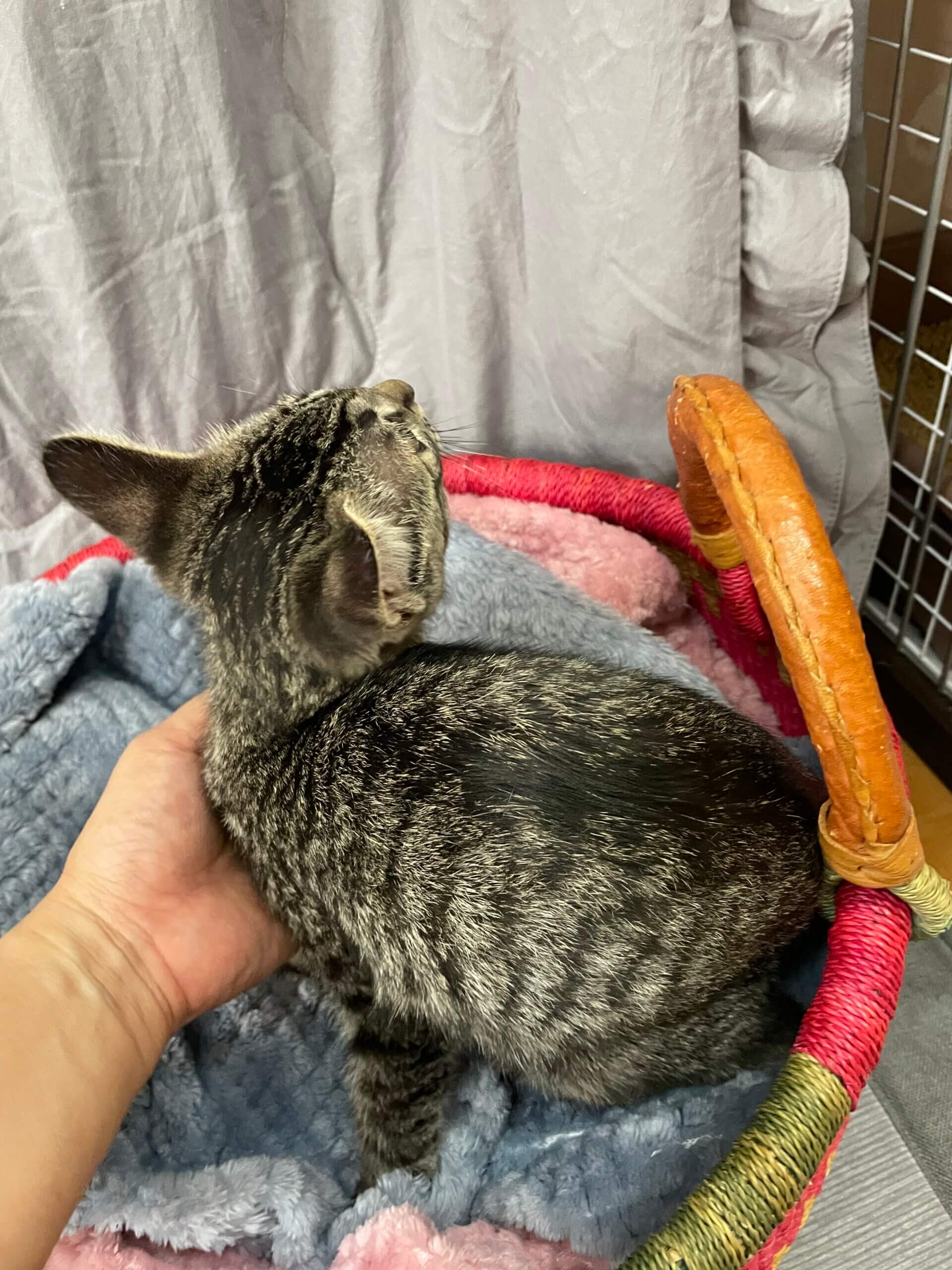 黒が多めのサバトラの男の子。