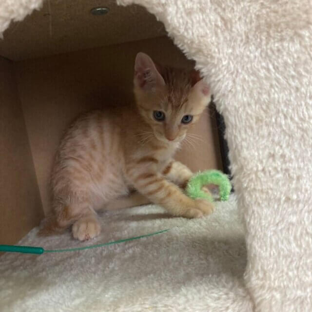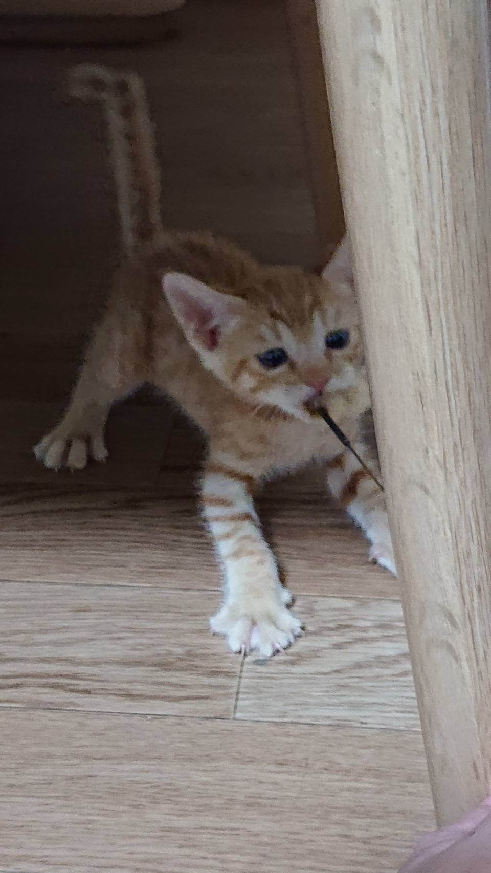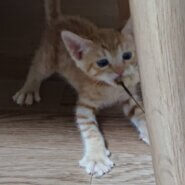推定1.8ヶ月茶トラの男の子で、好奇心旺盛でやんちゃ、ジャンプ力もあり、先住猫の目の前で爪とぎをしまくる精神力の強さがある男らしい子猫です。抱っこもナデナデも大好きでとても可愛いです。一緒に保護している妹の『えむ』と仲良しなので、ふたりでお迎えしていただけたら嬉しいです。よく食べて、よく遊んで、とても元気です。まだ小さな子猫のため、お留守番の少ないお家を希望します。2匹一緒に初心者様にもオススメです。