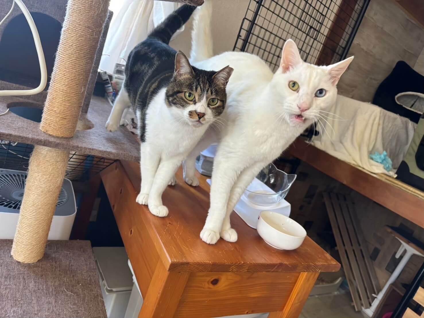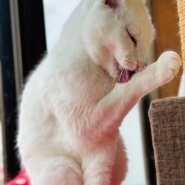 真っ白な体にオッドアイというイケてるにゃんこです。
