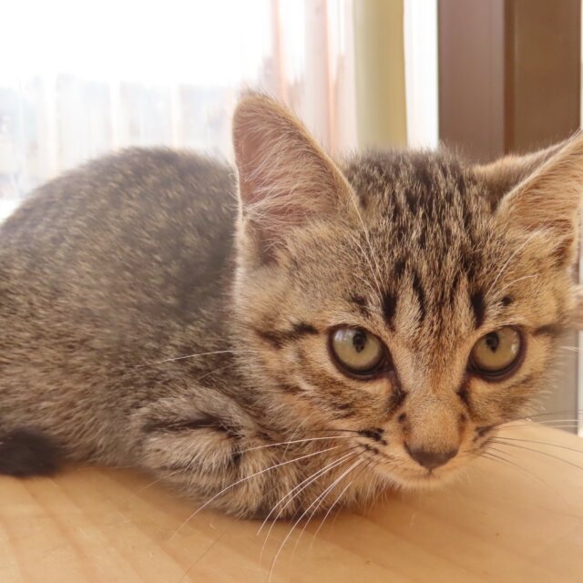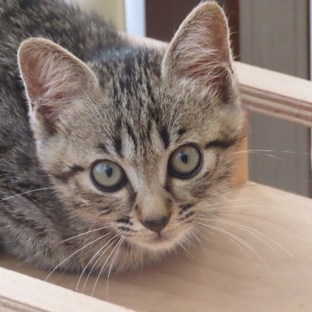 子猫のハンナちゃんです。ハンナちゃんは最後にレスキューできた子で、性格は慎重派。とても賢くよく人間を観察しています。大切な家族としてお迎え頂ける方を探しています。よろしくお願い致します。