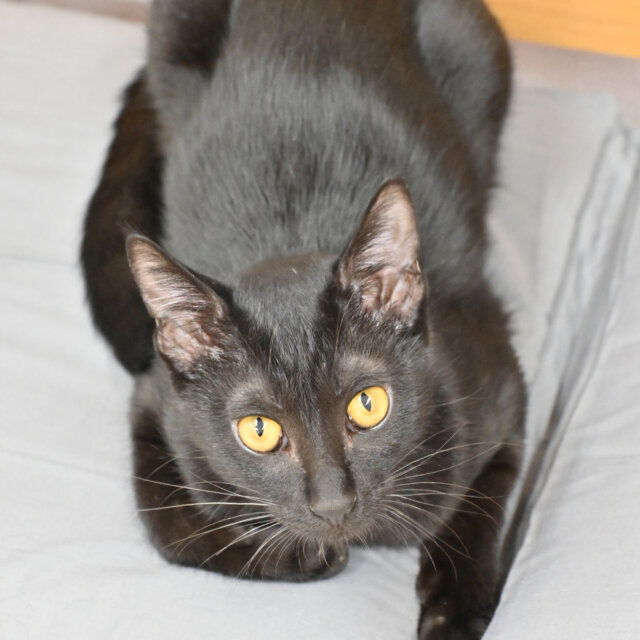 ご飯をたくさん食べます。ネズミのおもちゃが大好きで口にネズミを咥えて自慢げに見せにくる姿がかわいです。