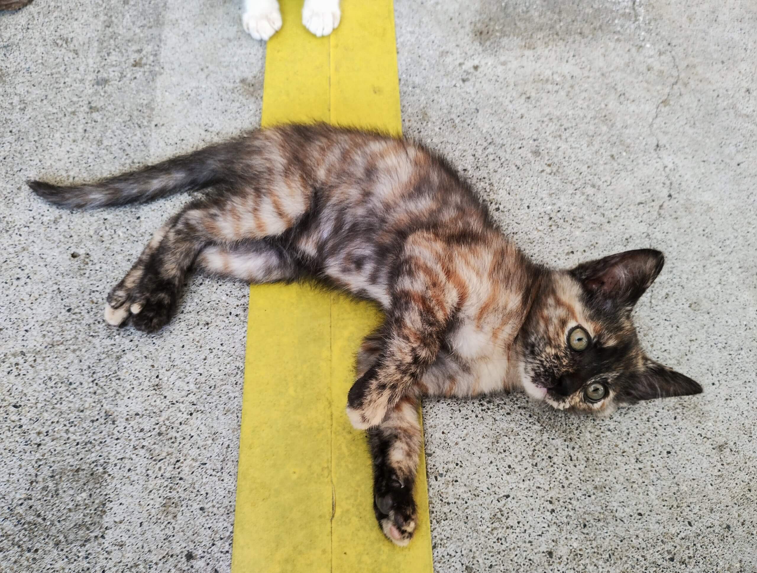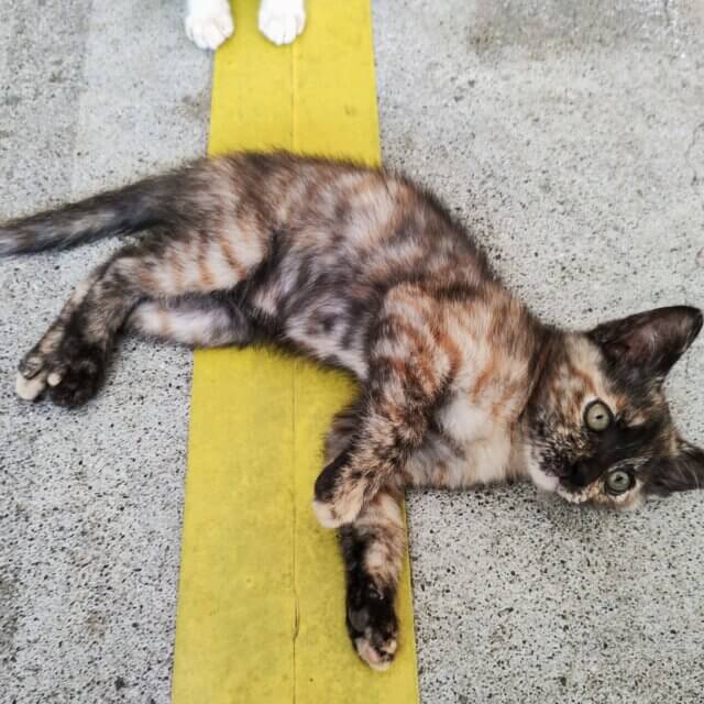 性格は兄妹の中で一番ビビりですが、ごはんを毎日あげてたら、ちょっとずつ慣れてきて、少し撫でられるようになりました。
