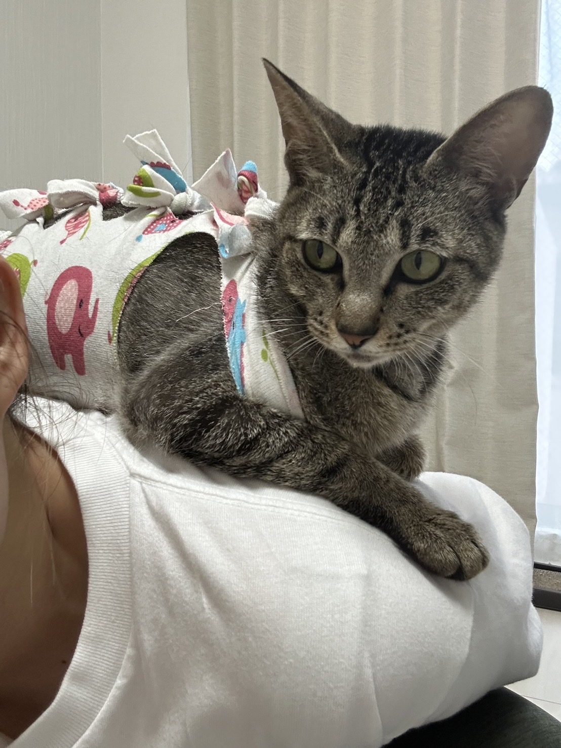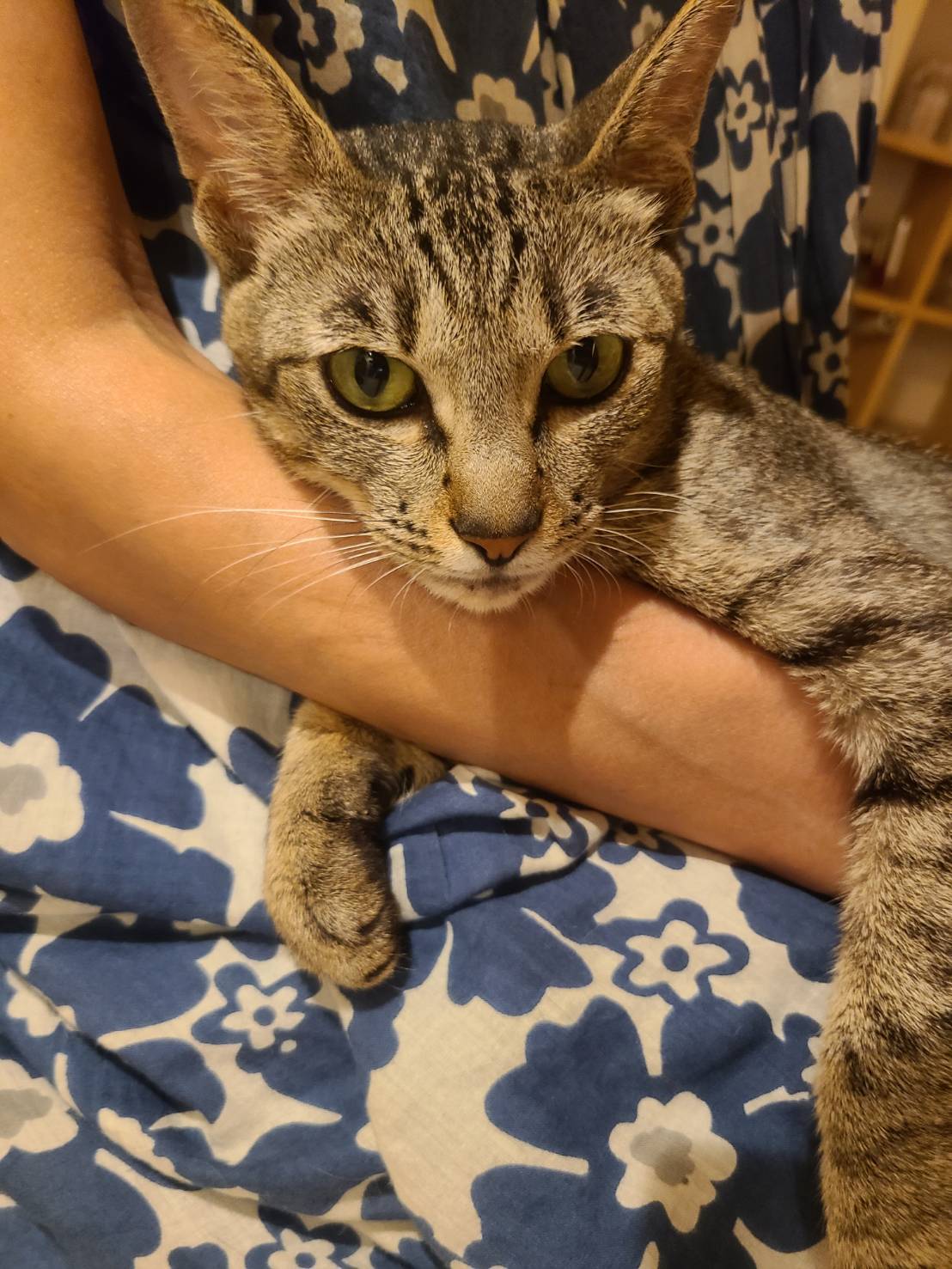 がりがりにやせ細っており、その地域で他の猫が迫害されていたこともあり保護しました。 -