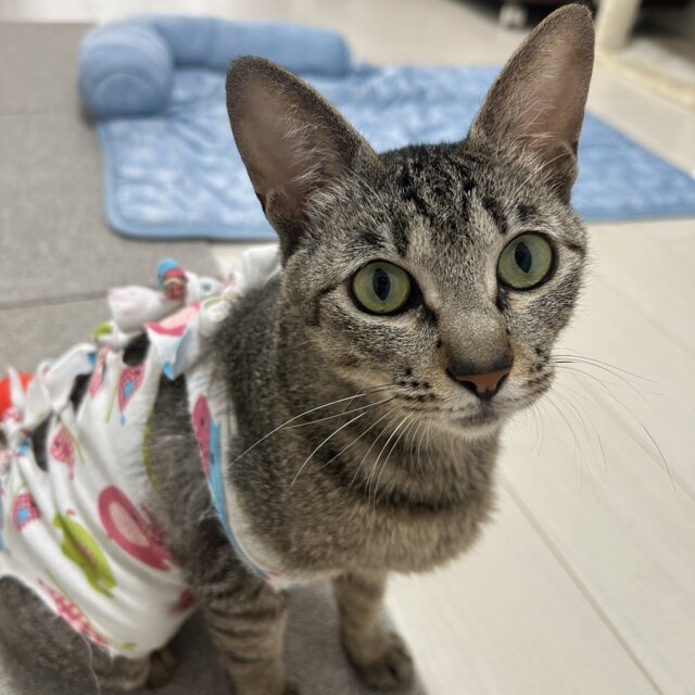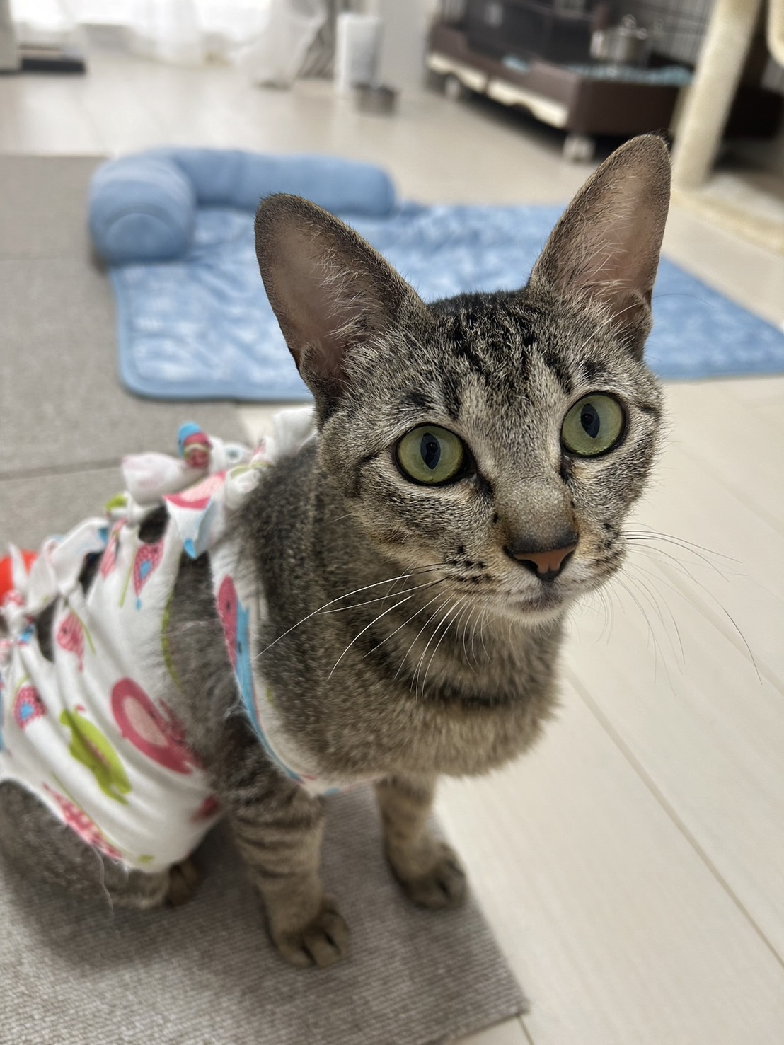 保護した当初は臆病で、すぐおしっこ漏らしたり隠れてなかなか出てこなかったですが、今や心を許すと、人にずっとくっついてきて、甘えて、玄関でお迎えして、犬のような甘えん坊です!