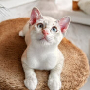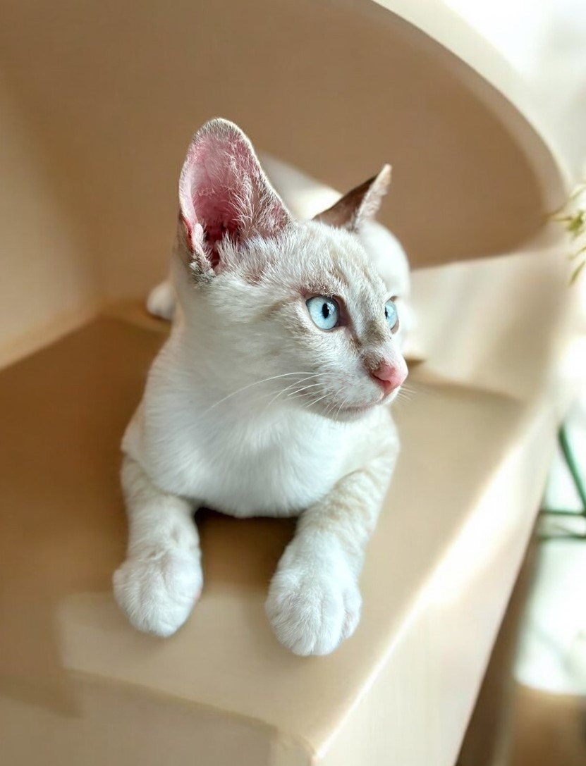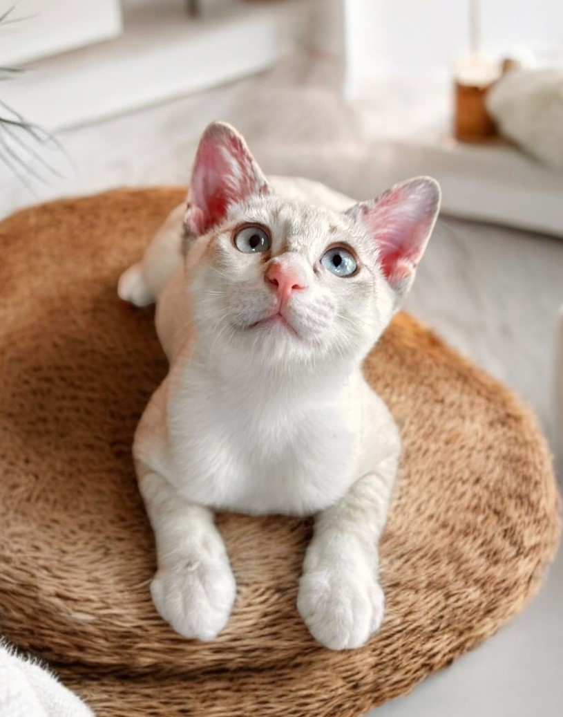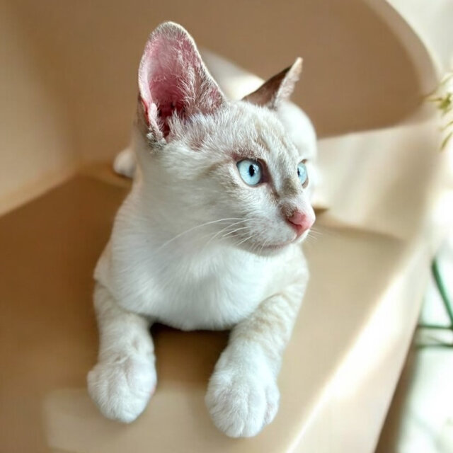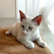 シャム系によくある青い瞳にやや寄り目な感じが可愛いです❤