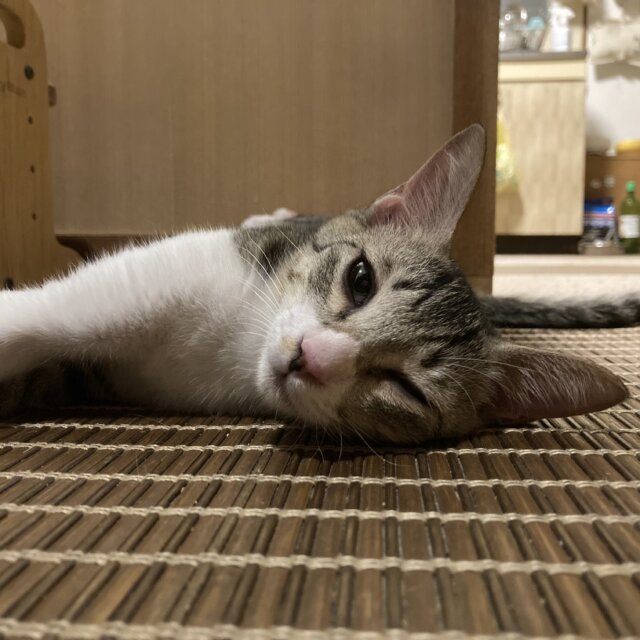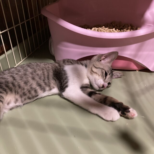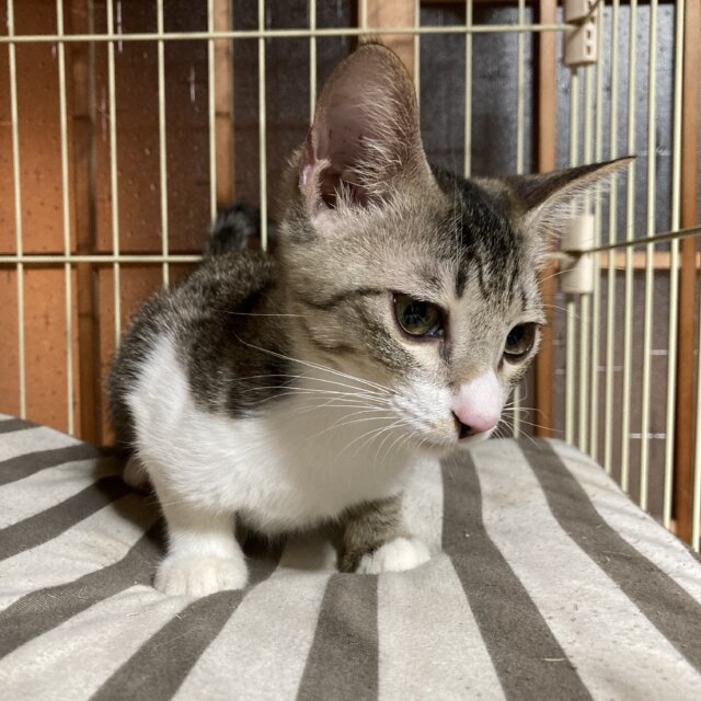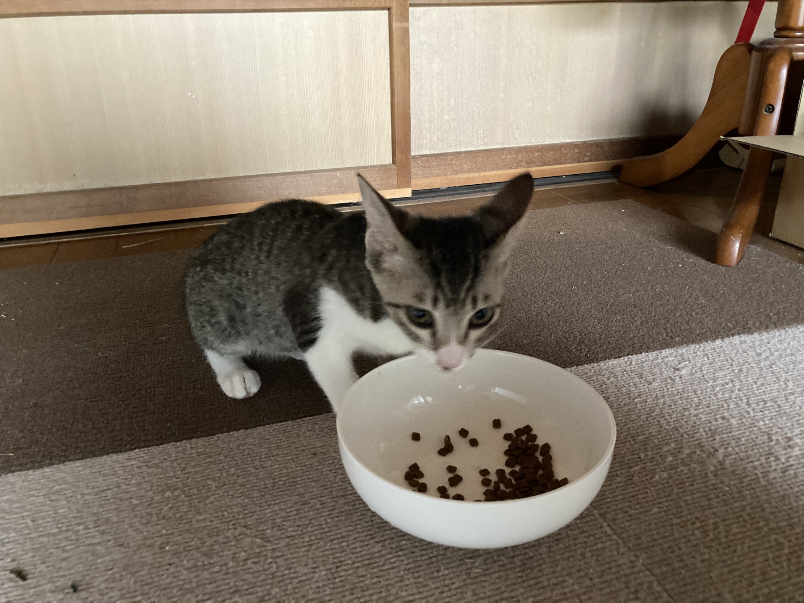民家の庭先の外猫のご飯場所に生後2ヶ月ぐらいの時に1人でひょっこりやってきたので、保護しました。