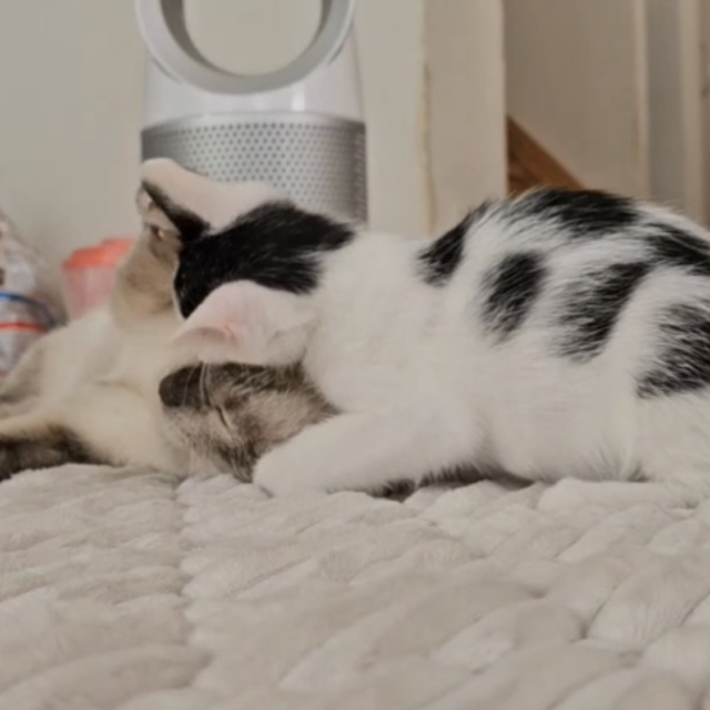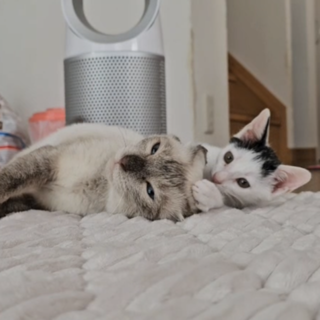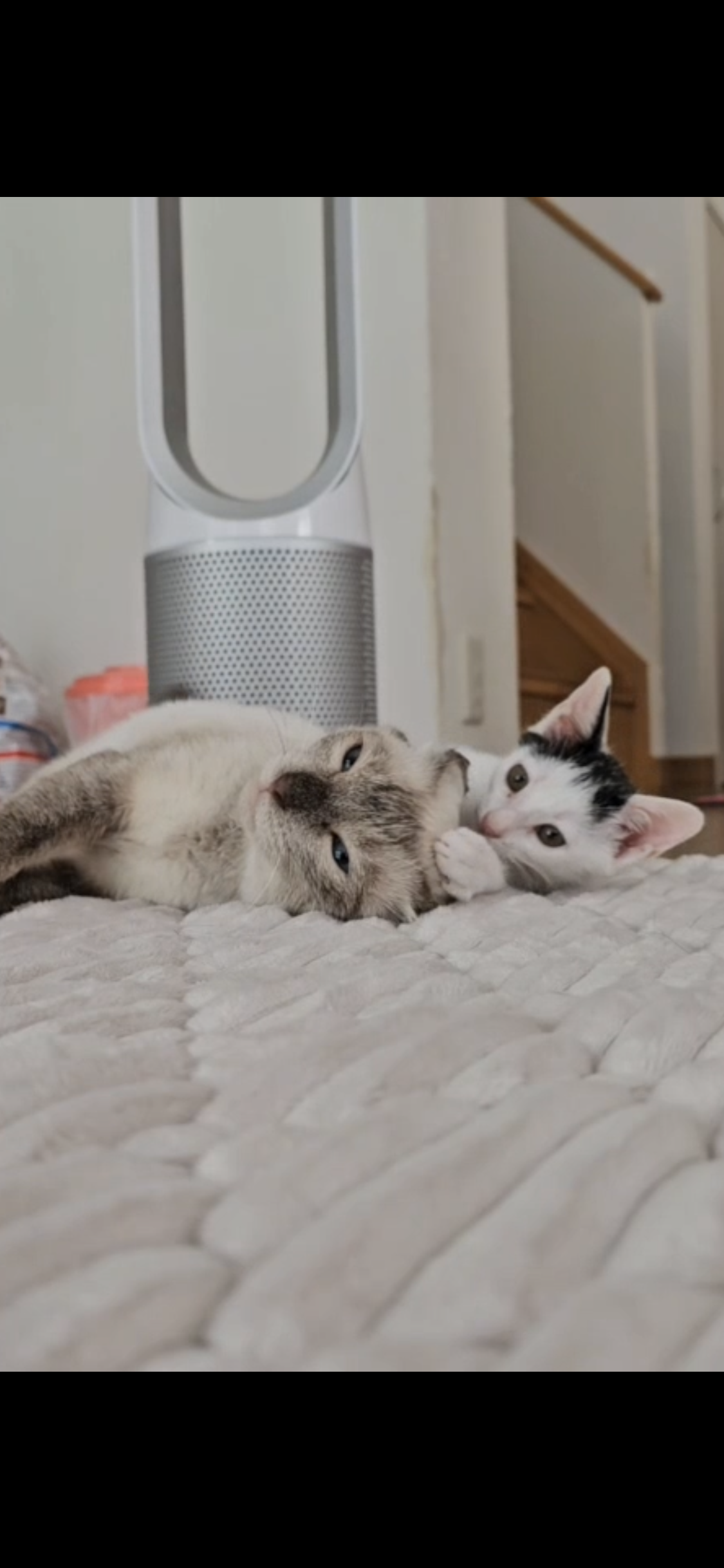 ・現在、預りボランティアさんのお家で先住猫さん達に遊んでもらいながらスクスク成長しています。