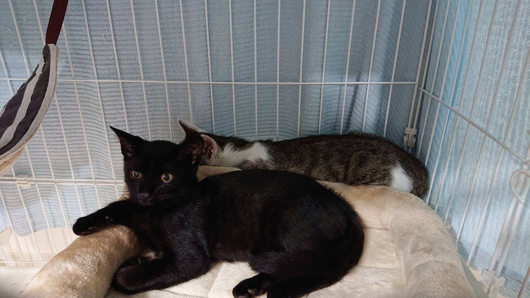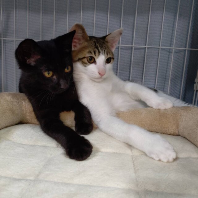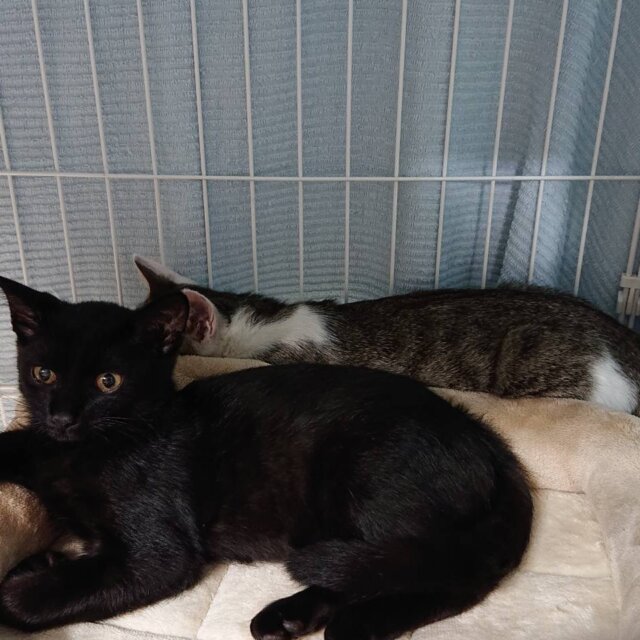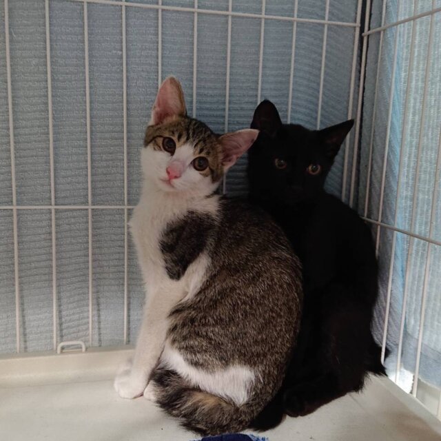 推定3ヶ月の黒猫の子猫です。まだ保護したばかりですが、とても甘えん坊で可愛いです。一緒に保護している兄弟の『ノア(キジ白)』と仲良しなので、ふたりでお迎えしていただけたら嬉しいです。よく食べて、よく遊んで、とても元気です。お留守番はできますが、兄弟と2匹一緒か先住猫ちゃんのいるお家を希望します。