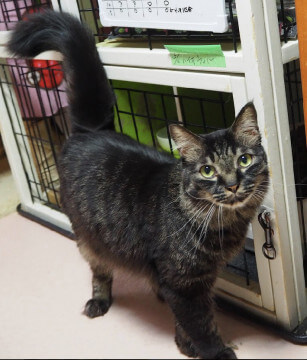 知り合いがご飯をあげているところに現れました。クルマに轢かれる場所なので引き取りました。