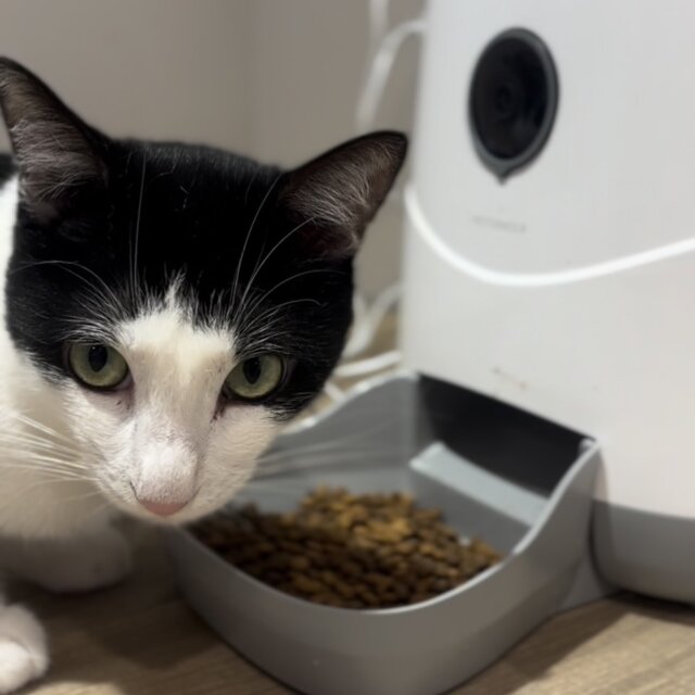 ハチワレの中でも少し独特な柄が前髪を切りすぎたみたい!