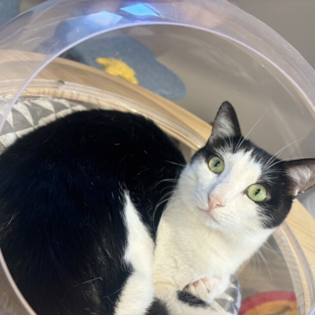 大好きな狭い場所でよく寝ていて、首元を撫でられるのが大好きです!