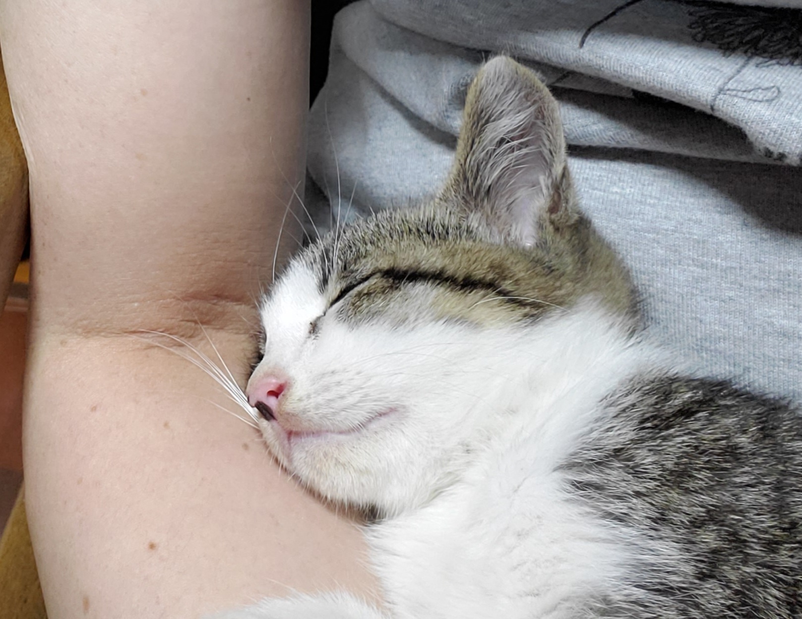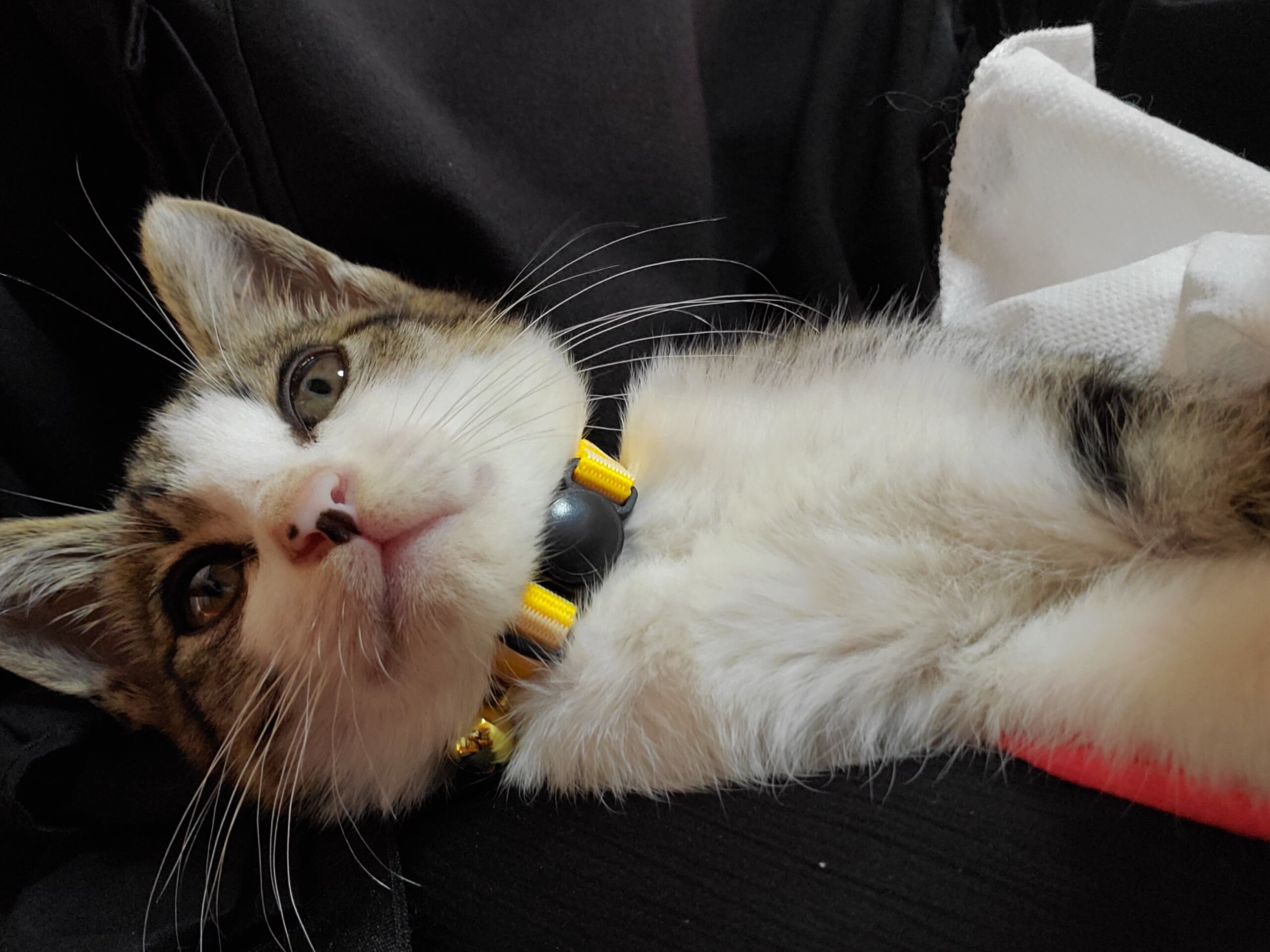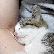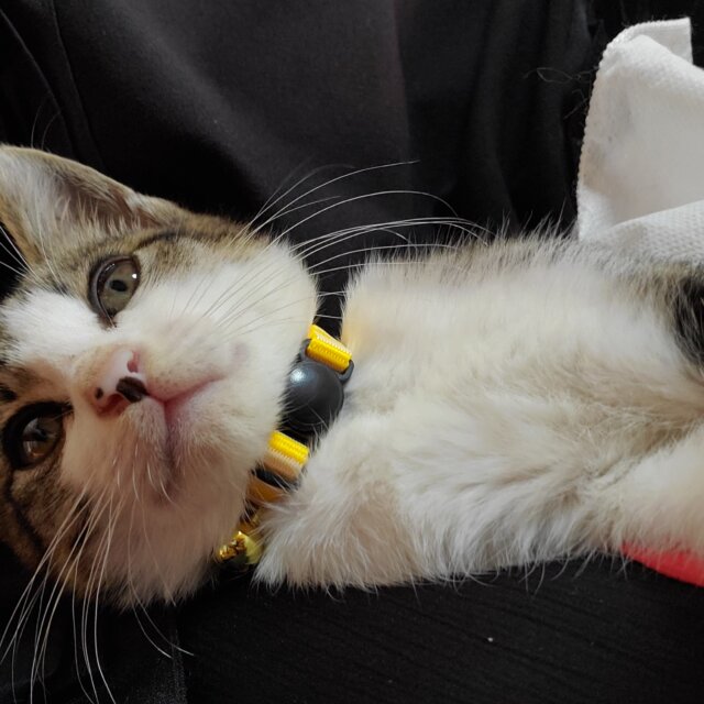 甘えん坊で、ひざの上で寝るのが大好きです。