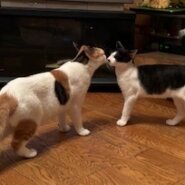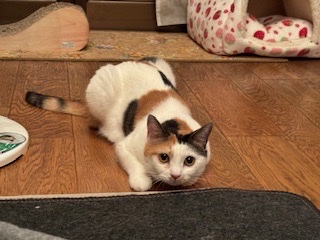 推定2歳の白三毛の女の子です。ビビりですが、ナデナデ大好きでゴロゴロの甘えん坊です。一緒に保護しているロン(白黒)と追いかけっこしたり、ニャンプロしています。一緒にずっとのおうちに行けたら嬉しいですが、猫好きなので先住猫ちゃんがいるお家を希望します。