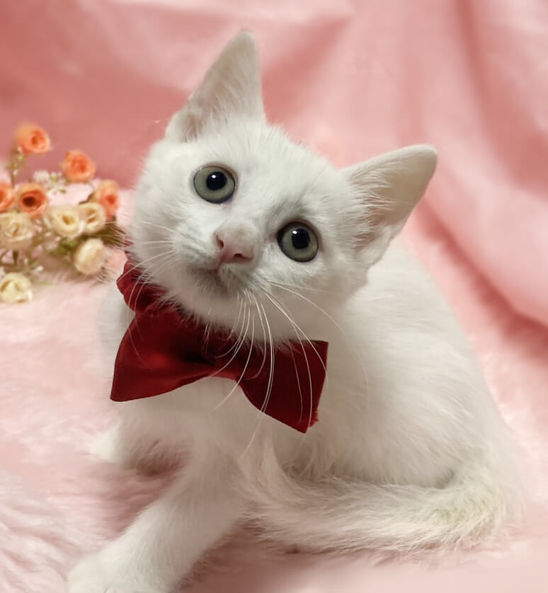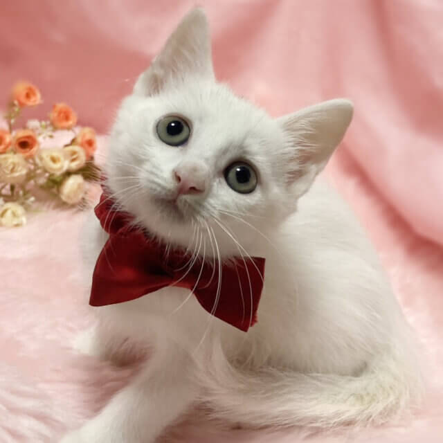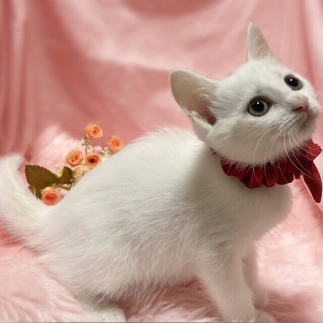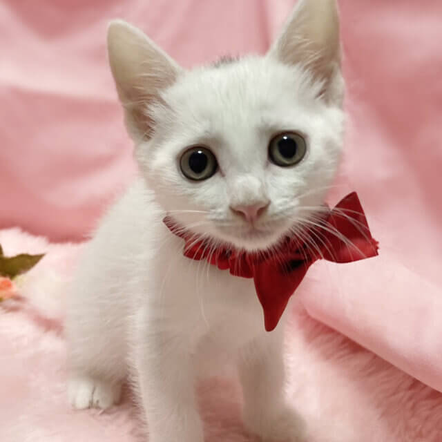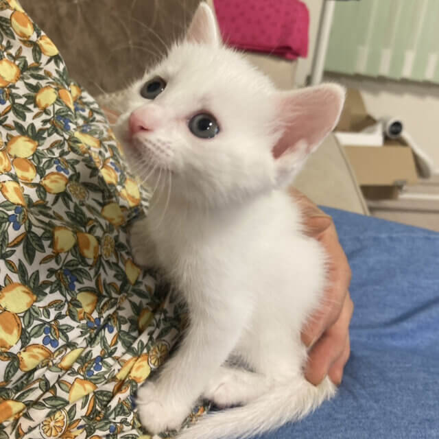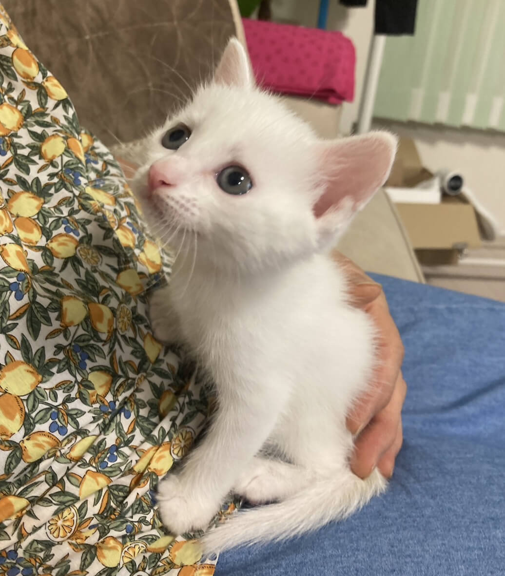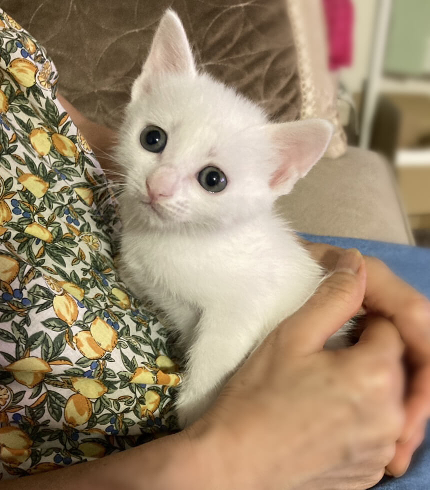 生後1日で保護!なれなれ4兄妹♪白猫『コマちゃん』