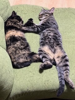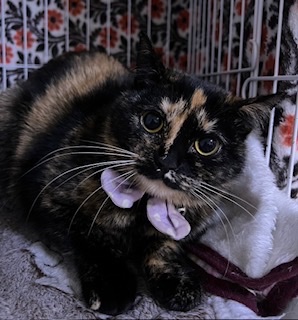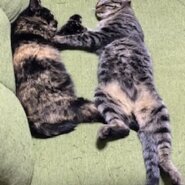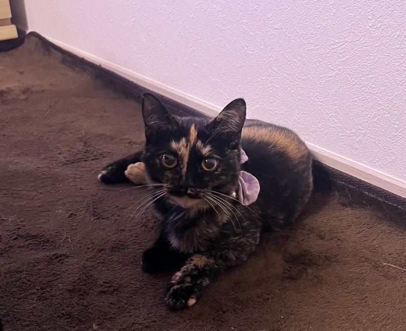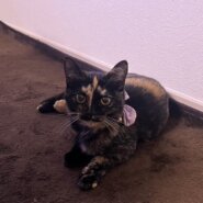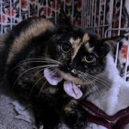 とても可愛いサビミケの女の子です。よく食べて、よく遊んで、とても元気です。目が綺麗で魅力的な模様です。サボ(キジトラ)とは兄妹です。仲良しのサボといつもくっついていて可愛いですので、一緒に迎えてくださる里親様を希望します。